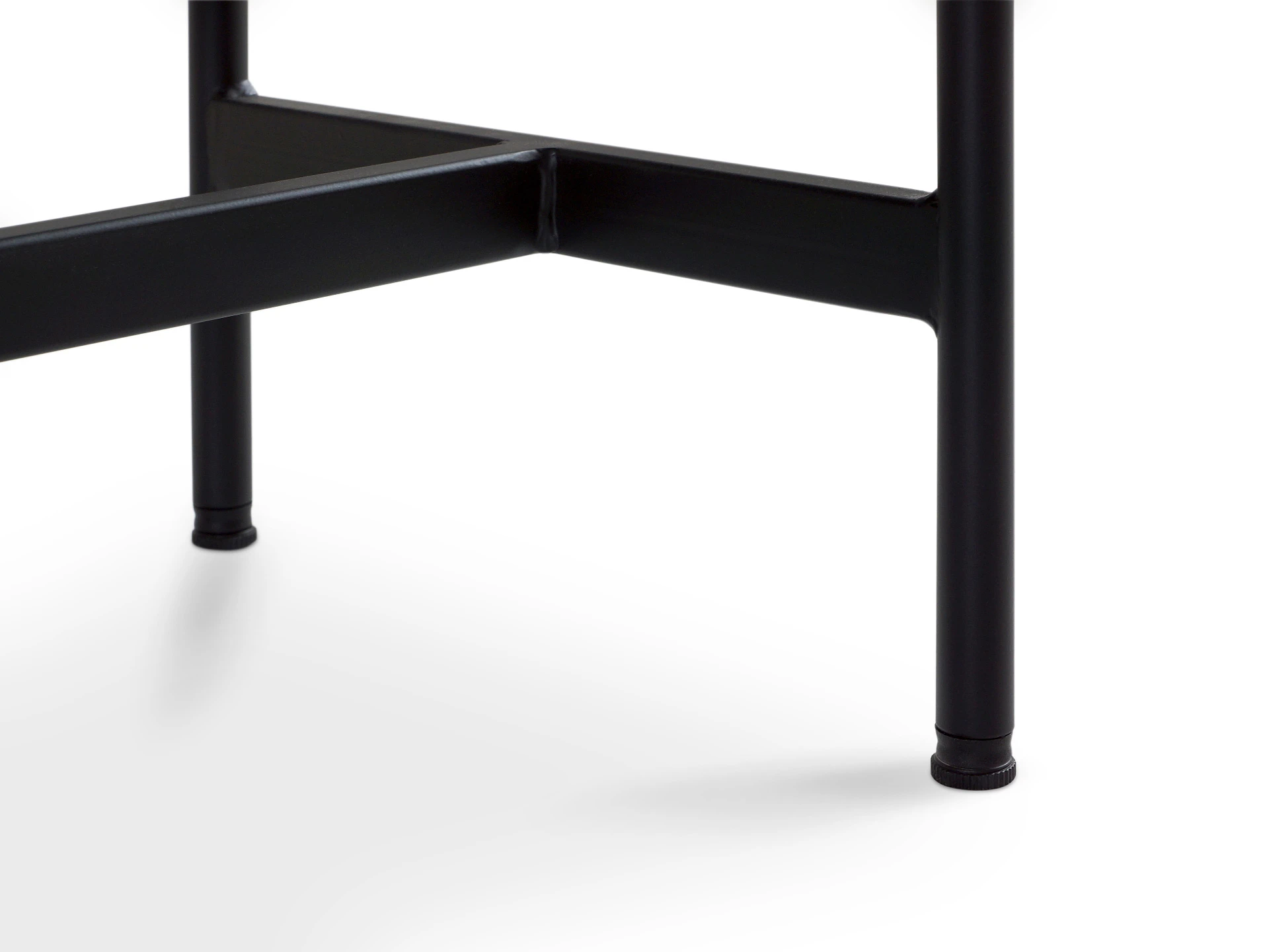 Основание из стальной трубы черного матового цвета с регулируемыми подпятниками. Опоры – регулируемые. Предусмотрено крепление к стене (крепежи в комплекте).