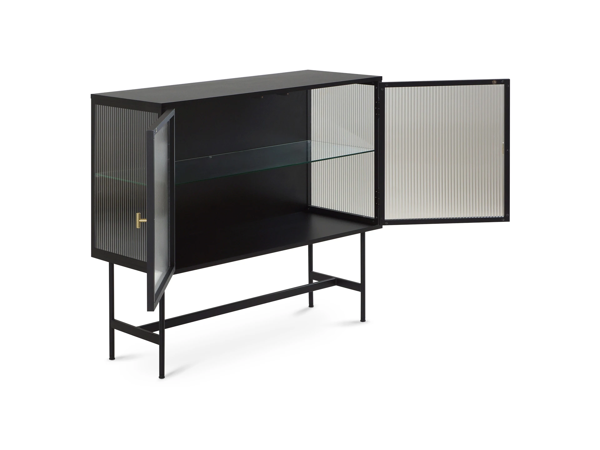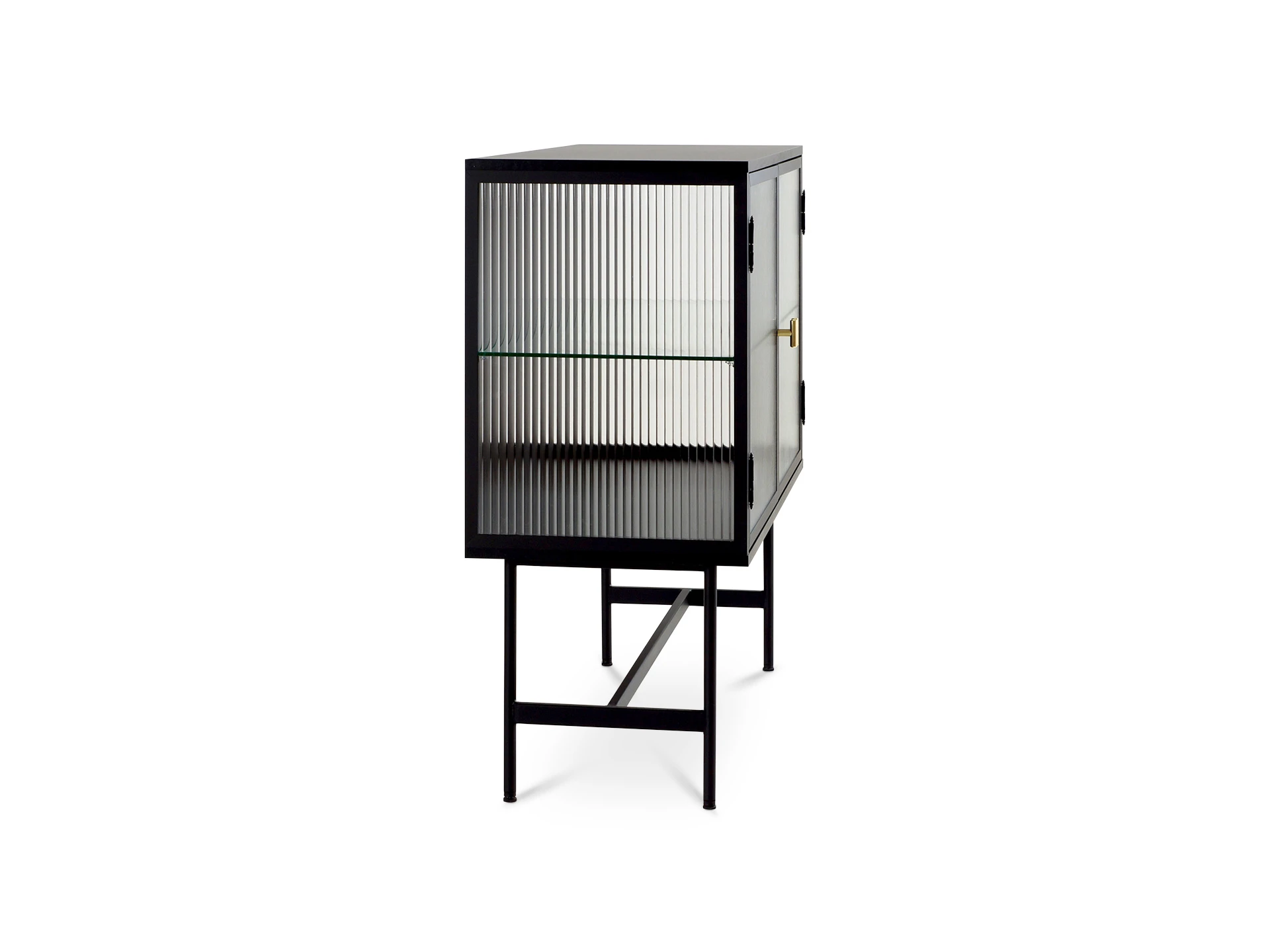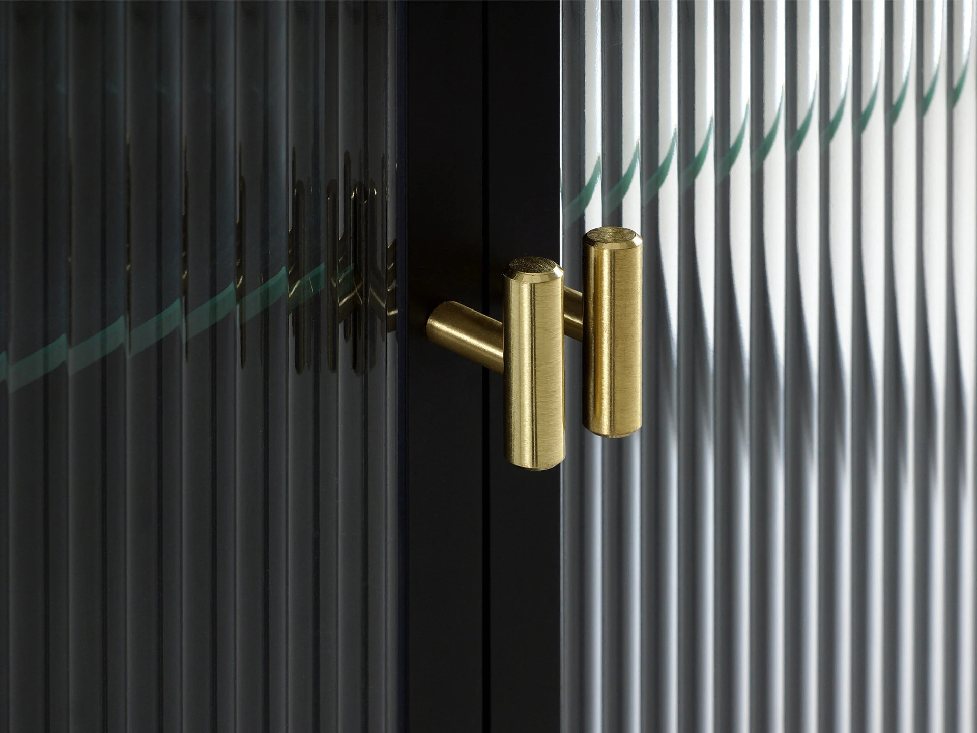 Витрина The One сочетает в себе элегантный дизайн с большим количеством функциональных возможностей. «Прозрачная» архитектура — вдохновение винтажными буфетами и витринами 50-60-х годов. Черный алюминевый профиль добавляет эстетики лофта и гранжа. На фасадах и боковых рамах — рифленое стекло, позволяющее организовать «музейное» хранение любых вещей. Используйте его в качестве фокусной точки в столовой для «выставки» необычной посуды, в гостиной для коллекции редких изданий или в ванной для парфюмерии и косметики. Универсальный характер витрины The One подходит для оформления бьюти и лаундж-зон, творческих мастерских и креативных пространств. Хорошо работает как самостоятельный предмет интерьера, так и в паре с сервантом The One.