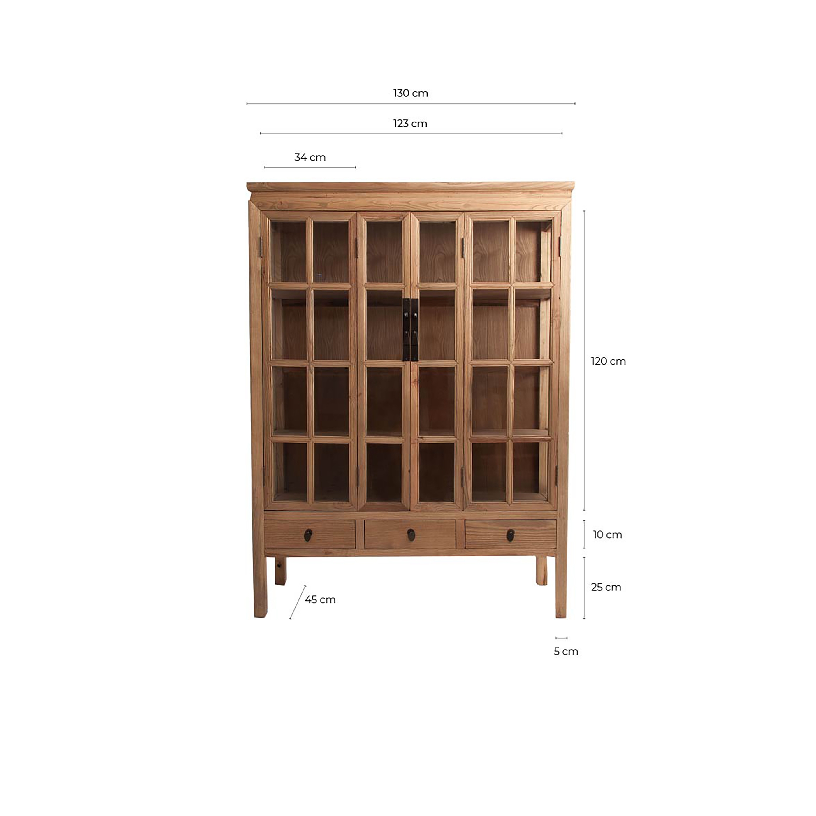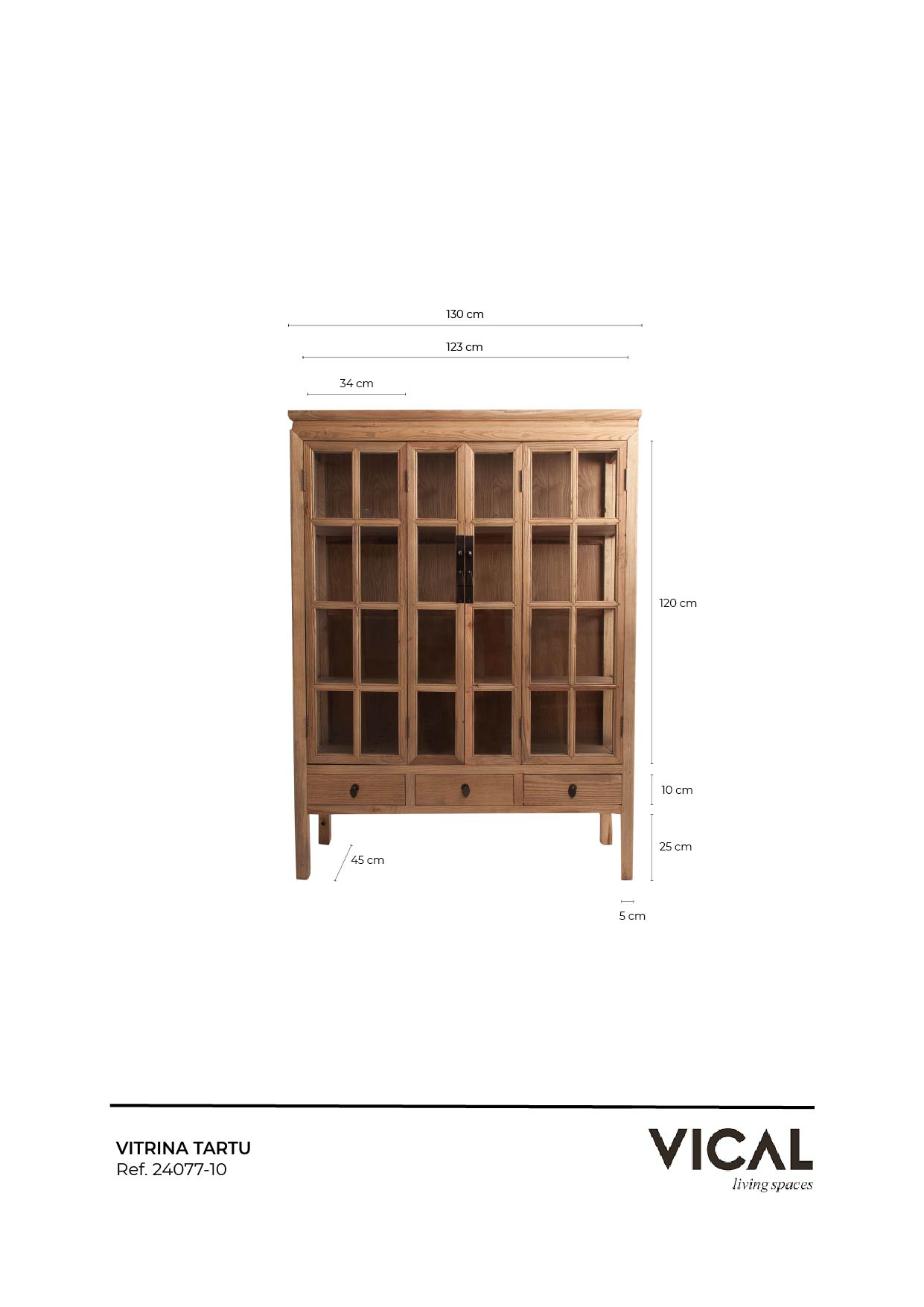 Откройте для себя элегантность нашей витрины Tartu, принадлежащей к выдающейся серии TARTU. Изготовлен из прочной древесины вяза и представлен в естественном цвете, излучающем тепло. Его размеры 130x45x175 см делают его идеальным для демонстрации ваших самых ценных предметов и придания вашему дому неповторимости. Деревянная витрина весом 65,7 кг станет центральным элементом вашего пространства. Примечание: изделие несъемное.