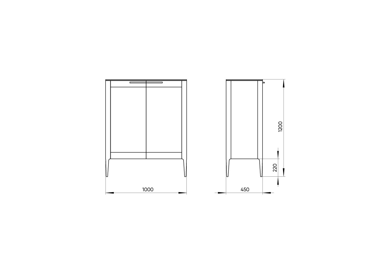 Высота: 120 см Ширина: 100 см Глубина: 45 см При производстве используется шпон натурального дуба, покрытие эмаль RAL 7035 Материал: массив дуба, натуральный шпон дуба, МДФ