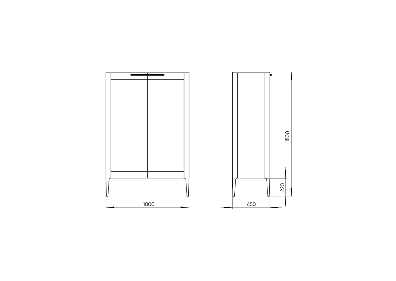 Высота: 150 см Ширина: 100 см Глубина: 45 см Покрытие эмаль, RAL 7044 Материал: дуб, МДФ, внутри ЛДСП