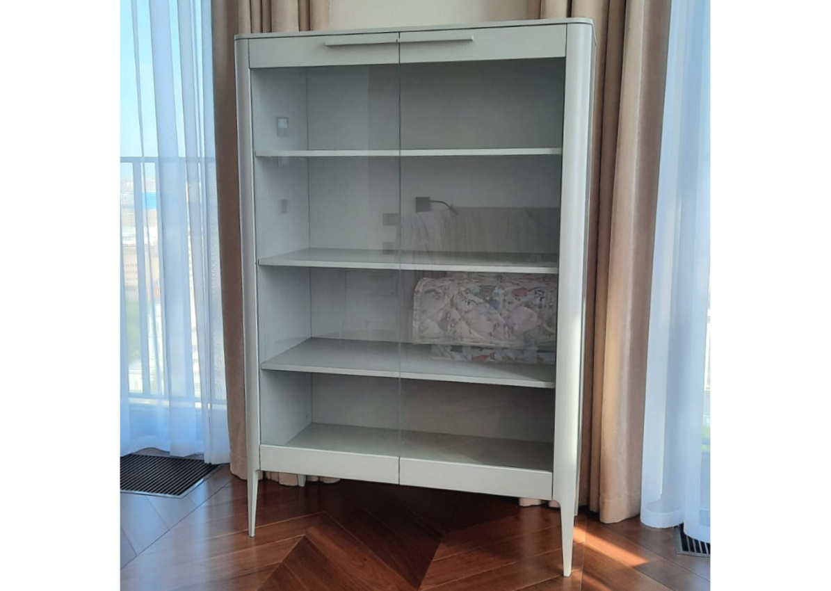 Высота: 150 см Ширина: 100 см Глубина: 45 см Покрытие эмаль, RAL 7035 Материал: дуб, МДФ, внутри ЛДСП