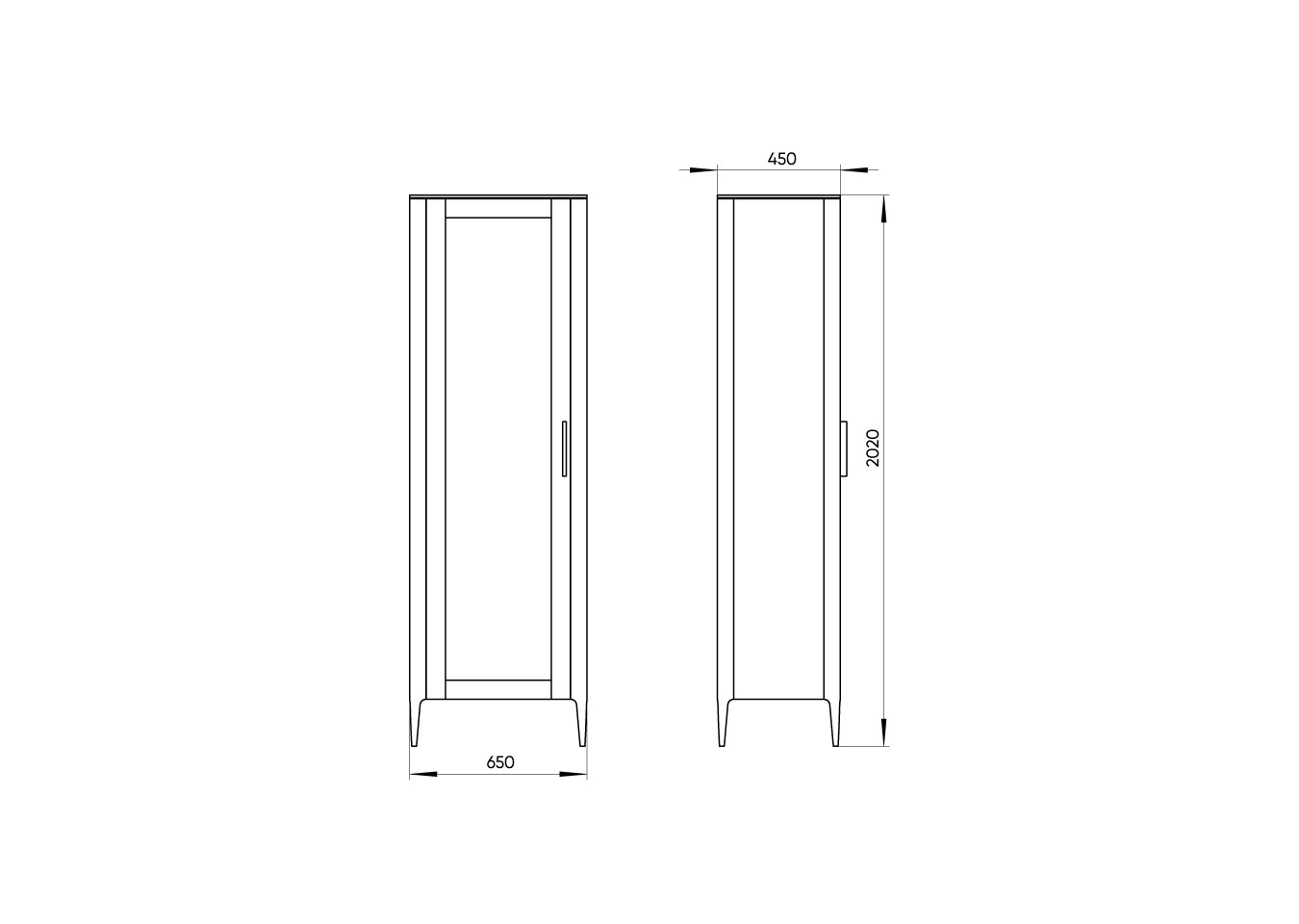 Высота: 202 см Ширина: 65 см Глубина: 45 см Покрытие эмаль, NCS S 0804-Y30R Материал: дуб, МДФ, внутри ЛДСП