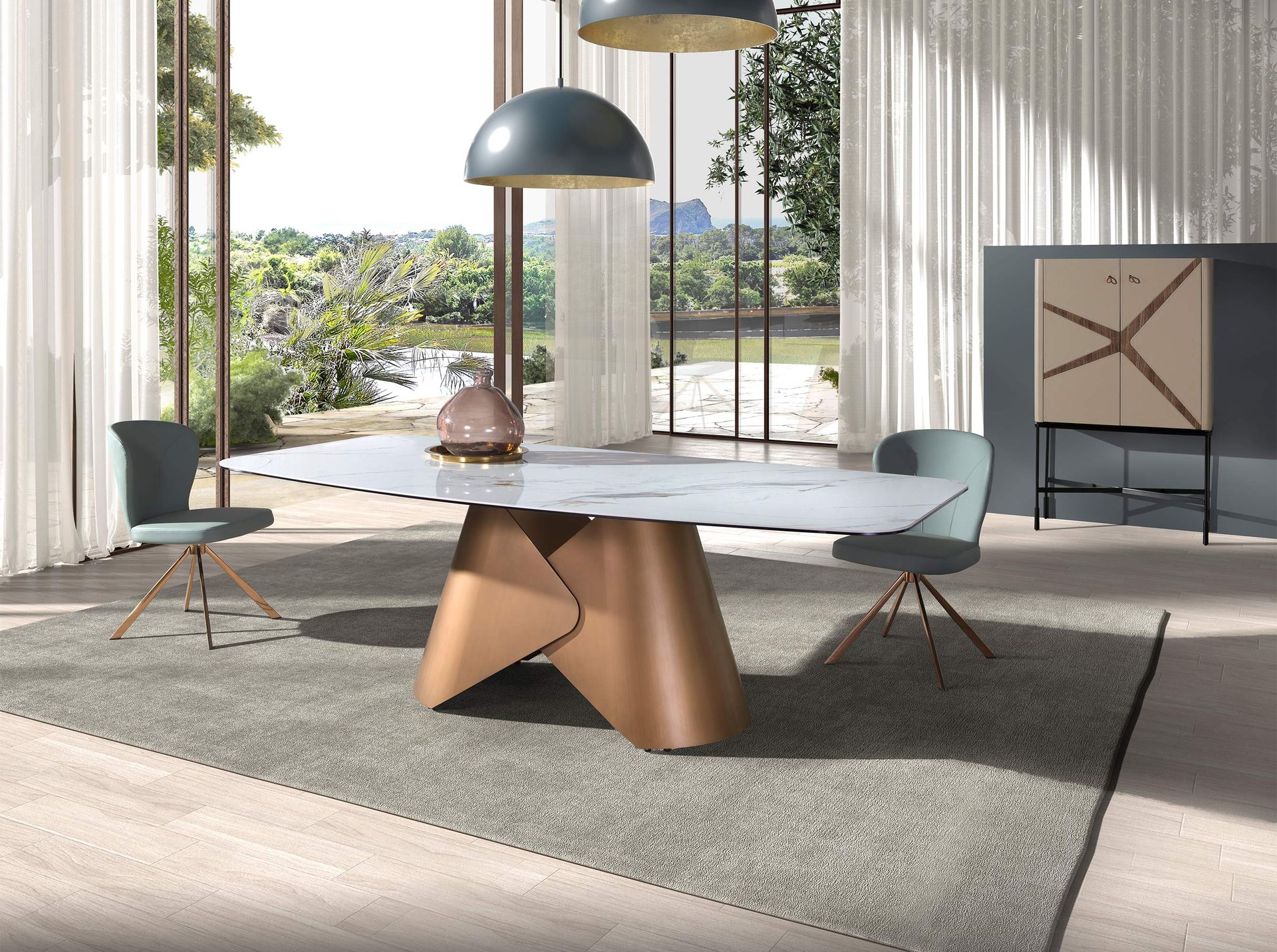 Современный вращающийся стул с сиденьем и спинкой, обитыми светло-зеленой кожзаменителем. Его ножки из нержавеющей стали с хромом цвета розового золота в авангардном, но неподвластном времени стиле сделают его обязательным для вашей кухни или столовой. Этот стул от Angel Cerdá сочетает в себе уникальный и индивидуальный стиль бренда, а также высочайший комфорт и устойчивость благодаря высокому качеству обивки и оригинальной конструкции ножек.