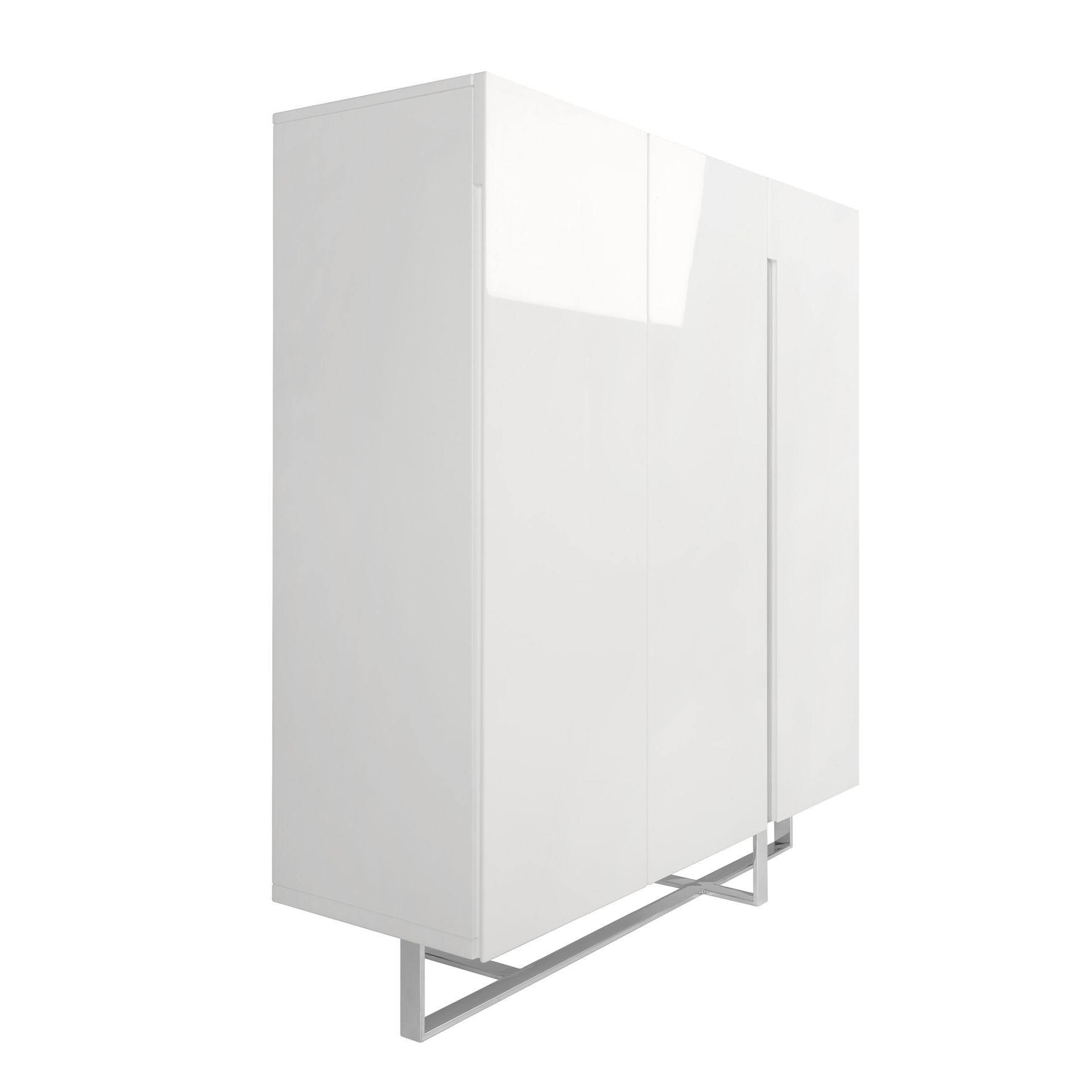 Высокий буфет CP1302-F — универсальный и нужный предмет мебели для современной городской квартиры от фабрики Angel Cerda. Буфет однозначно убеждает в своей «полезности». Сделав его высоким, дизайнеры дали владельцу возможность шире подойти к решению задачи о том, как можно использовать этот предмет мебели. Ведь с учетом такой высокой конструкции, в нем получится хранить не только «нужное» на нижних полках, но и то, что используется редко, — для этого как раз кстати «самый верхний этаж». Буфет выполнен в стиле минимализм. Каркас разделен вертикальной перегородкой на две части, где правая закрывается на двухстворчатые двери, а слева — дверь одинарная. Внутри отделений находится по две полки на одинаковой высоте по отношению друг к другу. Двери оснащены доводчиками на открывание и закрывание, поэтому не имеют ручек. Материал изготовления — лакированный МДФ. Впереди на фасаде справа имеется декоративная панель из хромированной стали. Она не является продолжением опоры, а лишь создает обманчивое ощущение этого. Стойка выполнена из хромированной стали. Она имеет рамочную конструкцию, поддерживая буфет вдоль и поперек, гарантируя надежность и устойчивость. Размеры буфета: ширина — 120 см, высота — 135 см, глубина — 42 см. Вес составляет 89 кг. Потребуется самостоятельная сборка. Рекомендуется участие двух человек. Инструкция и крепеж входят в комплектацию.
