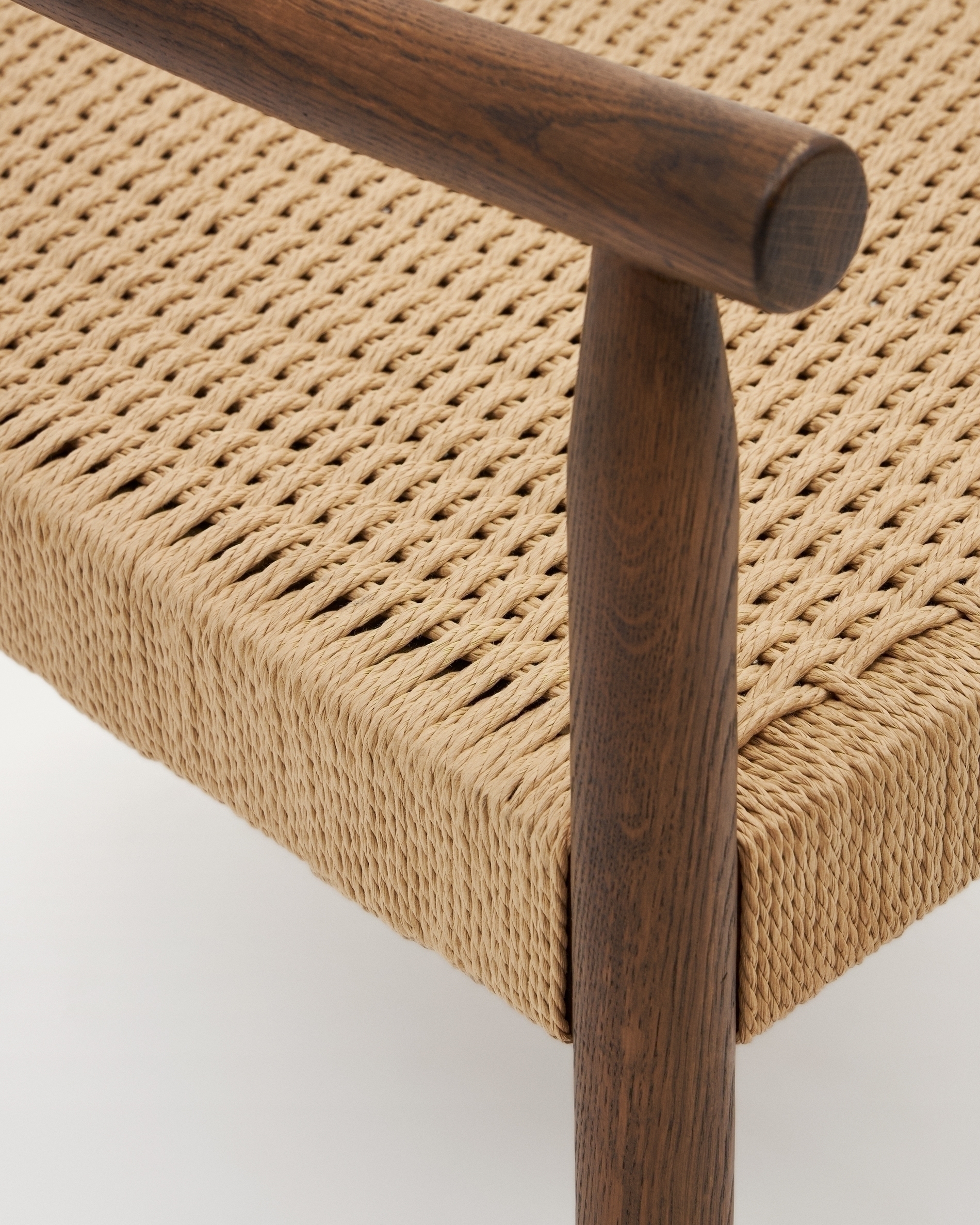Кресло Yaila представляет собой ремесленную конструкцию с конструкцией из массива дуба и сиденьем, изготовленным из бумажной веревки ручной работы. Его материалы также экологически чистые и имеют идеальную отделку, позволяющую впустить природу в ваш дом.