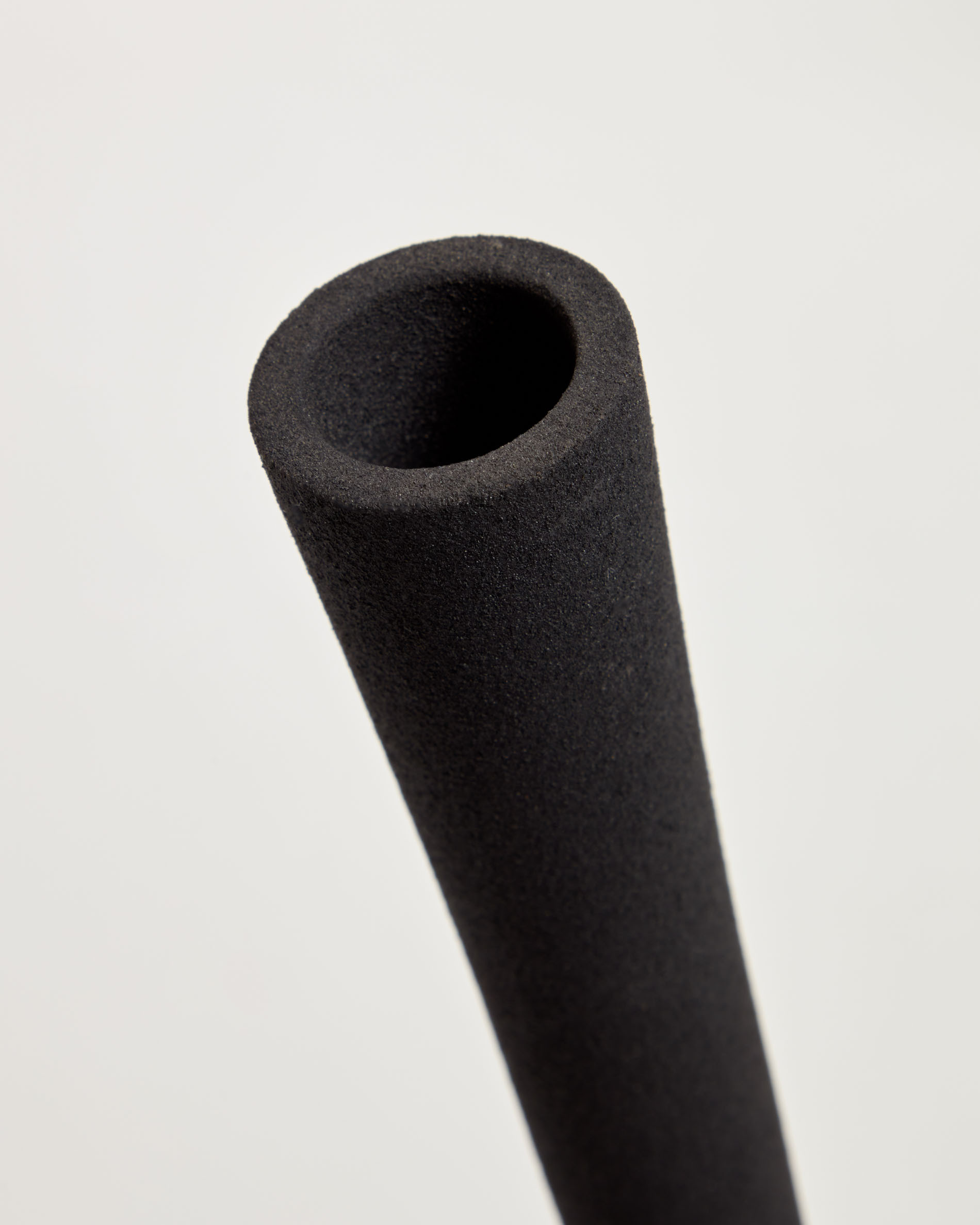Подсвечник полностью сделан из металла. Металл окрашен по методу порошкового нанесения в черный матовый цвет, благодаря чему, поверхность имеет бархатистую и равномерную фактуру.