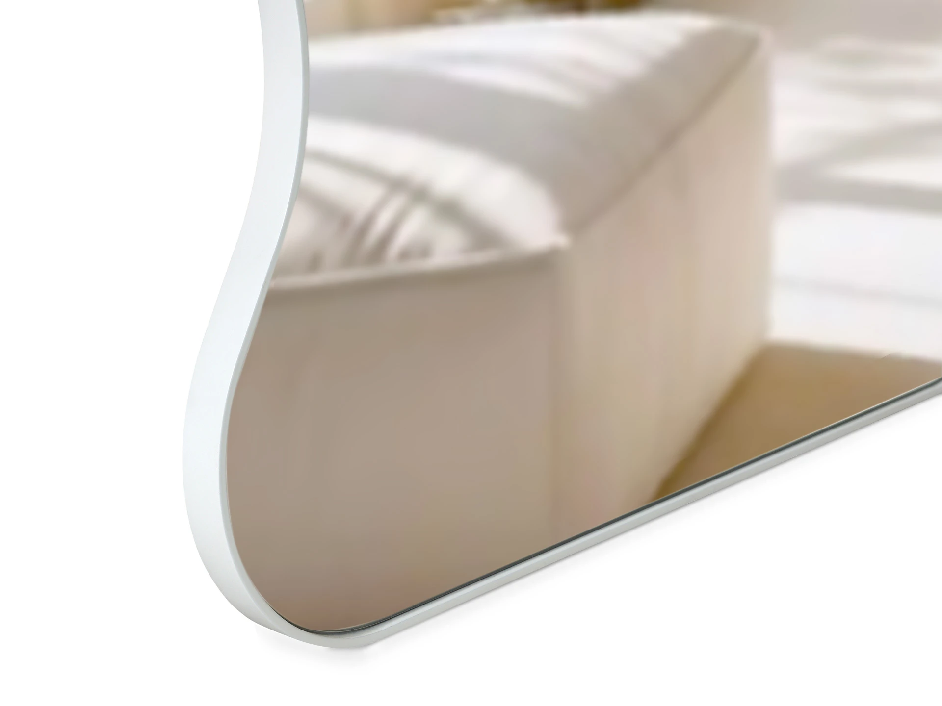 Напольное фигурное зеркало Alpi выделяется оригинальной геометрией. Волнистые края поддерживают тренд на плавные формы в интерьере. Рама выполнена из МДФ, окрашена белой эмалью. Размер зеркального полотна 80х180 см — можно увидеть себя в полный рост.