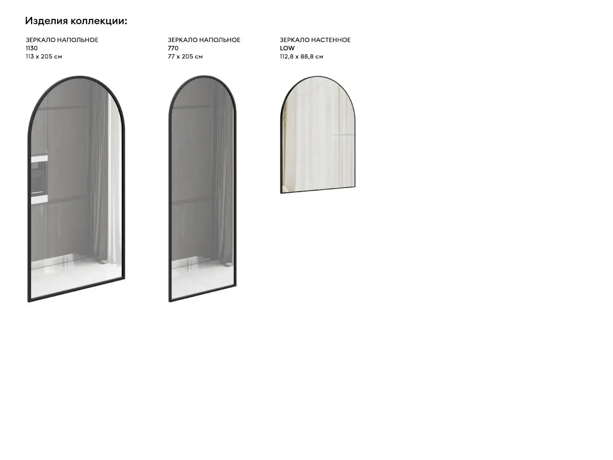 Зеркало напольное, крепление к стене в верхней точке. Обязательно установка на пол. Рамка – МДФ 25мм, окрашенная эмалью. Зеркало – толщиной 4мм, простое. Задняя стенка (заглушка) – ЛДСТп черная гладкая 10мм.
