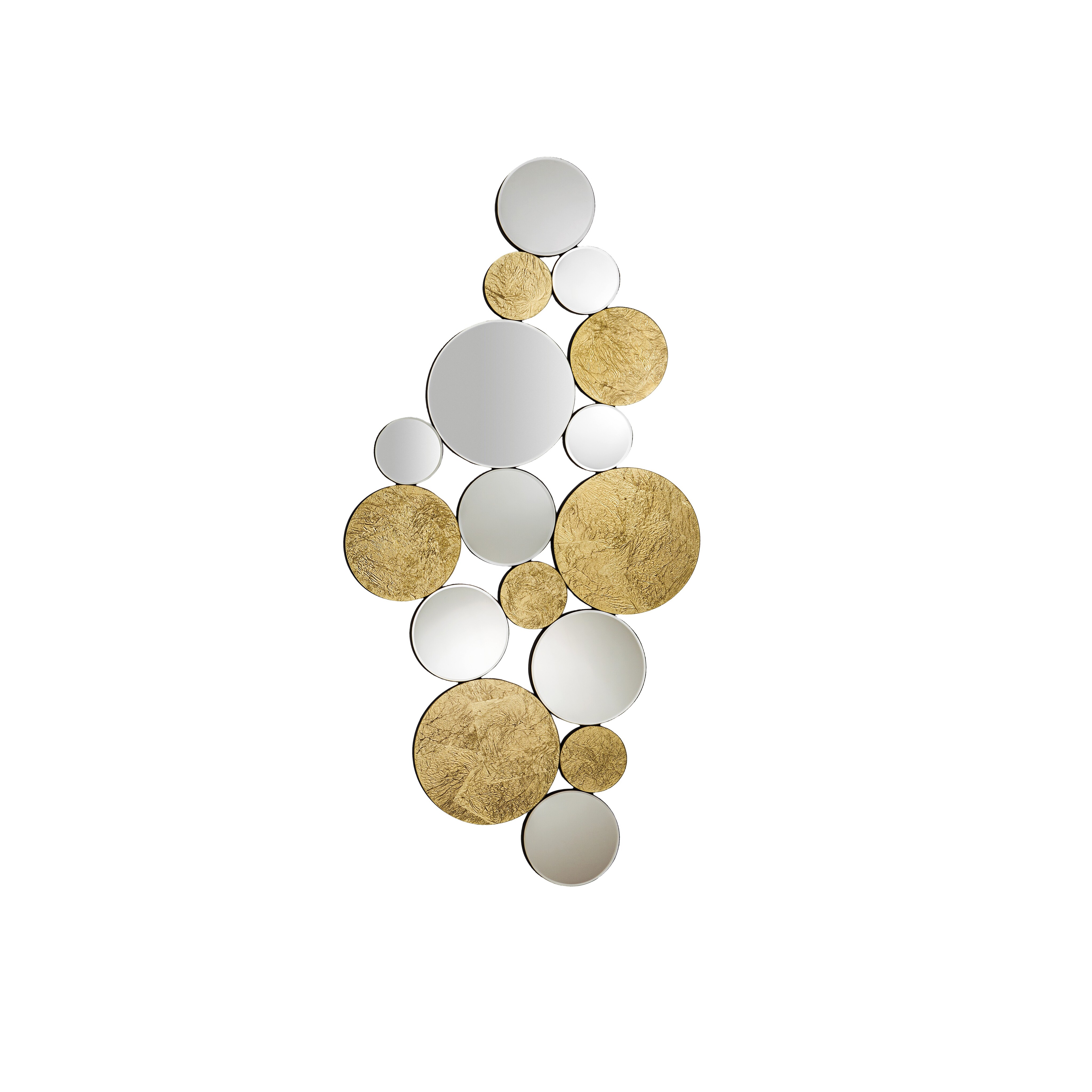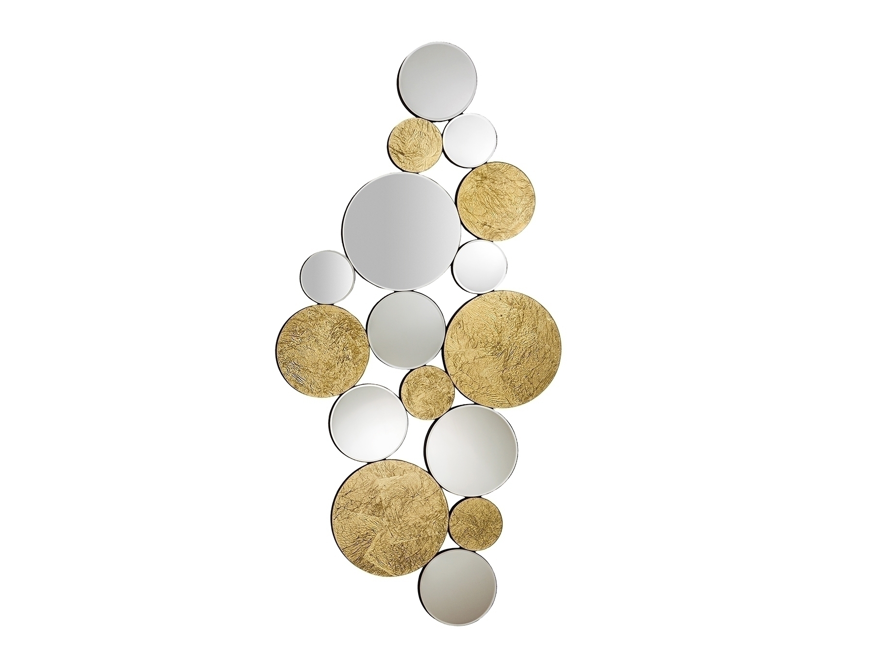 Зеркало в виде сферических зеркал и стекол с позолотой. Задняя часть выполнена из МДФ, окрашенного в черный цвет.