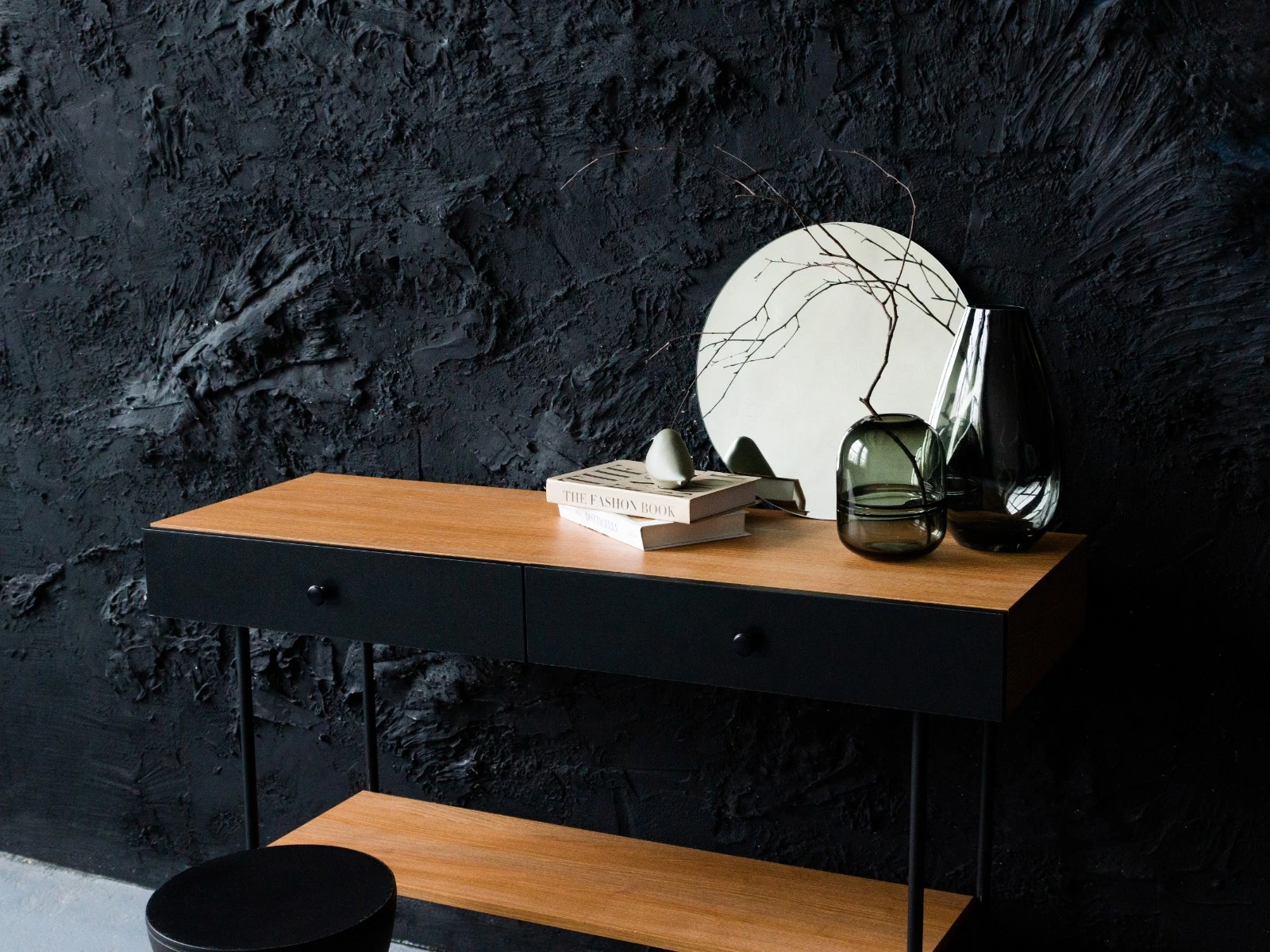 Зеркала настенное Cos представляют собой круглую зеркальную деталь, установленную на подзеркальный щит. Подзеркальный щит из ЛДСП т. 16мм, черного цвета.