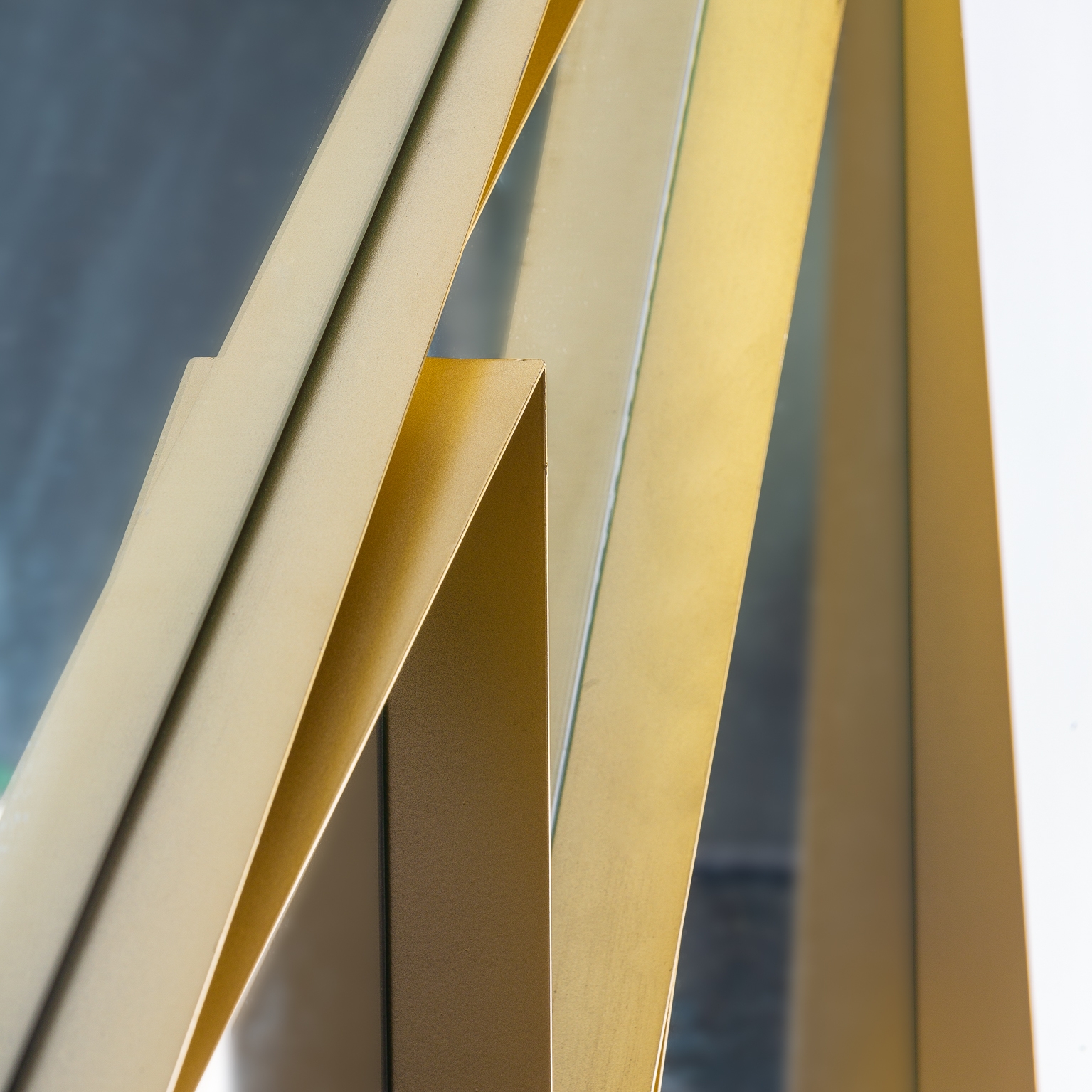 Зеркальный треугольный KODIE, золотистый цвет, стиль арт-деко. Изготовлен из зеркала в сочетании с латунью.