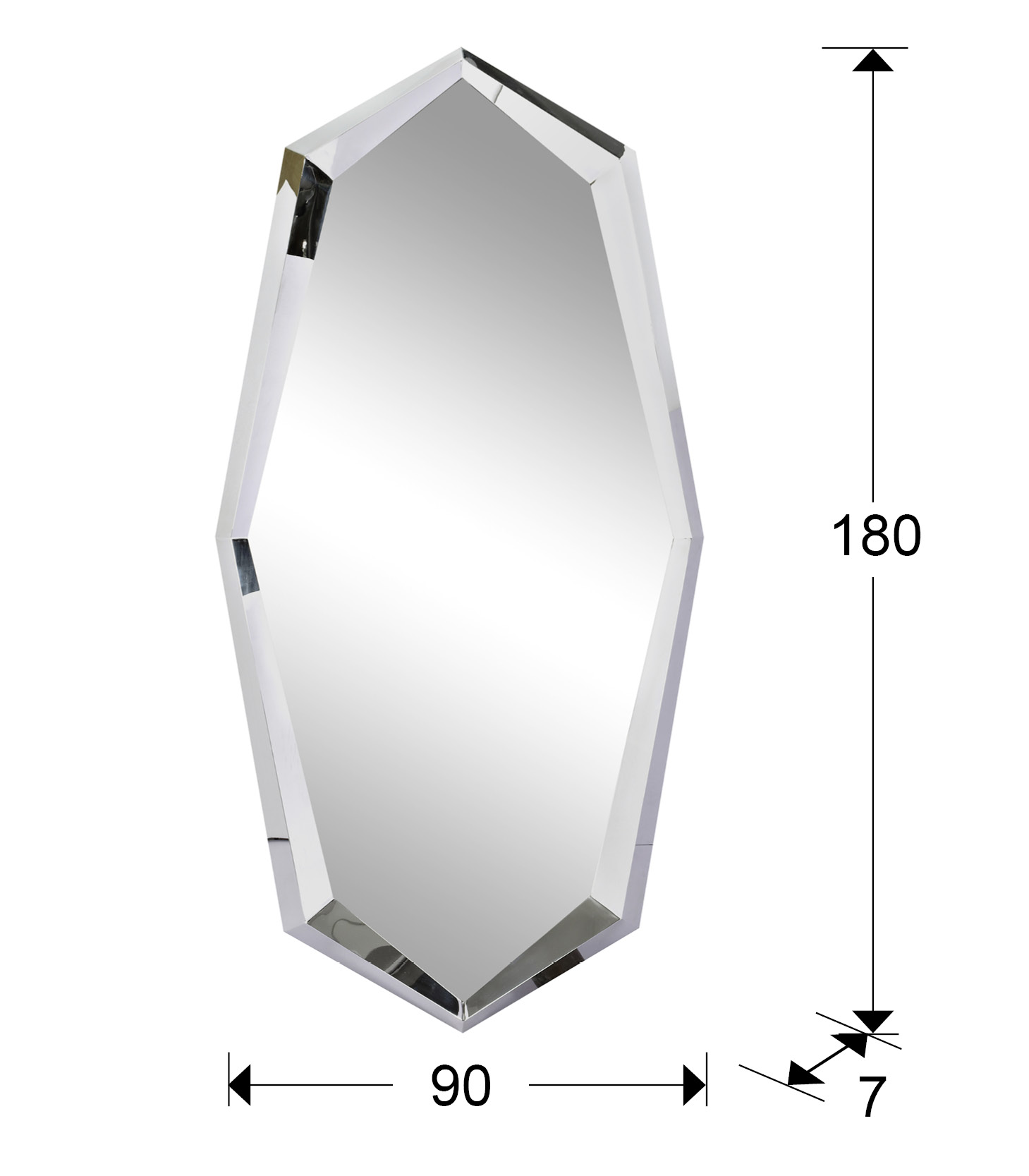 Зеркало в многогранной раме из полированной стали с высокоглянцевым покрытием.