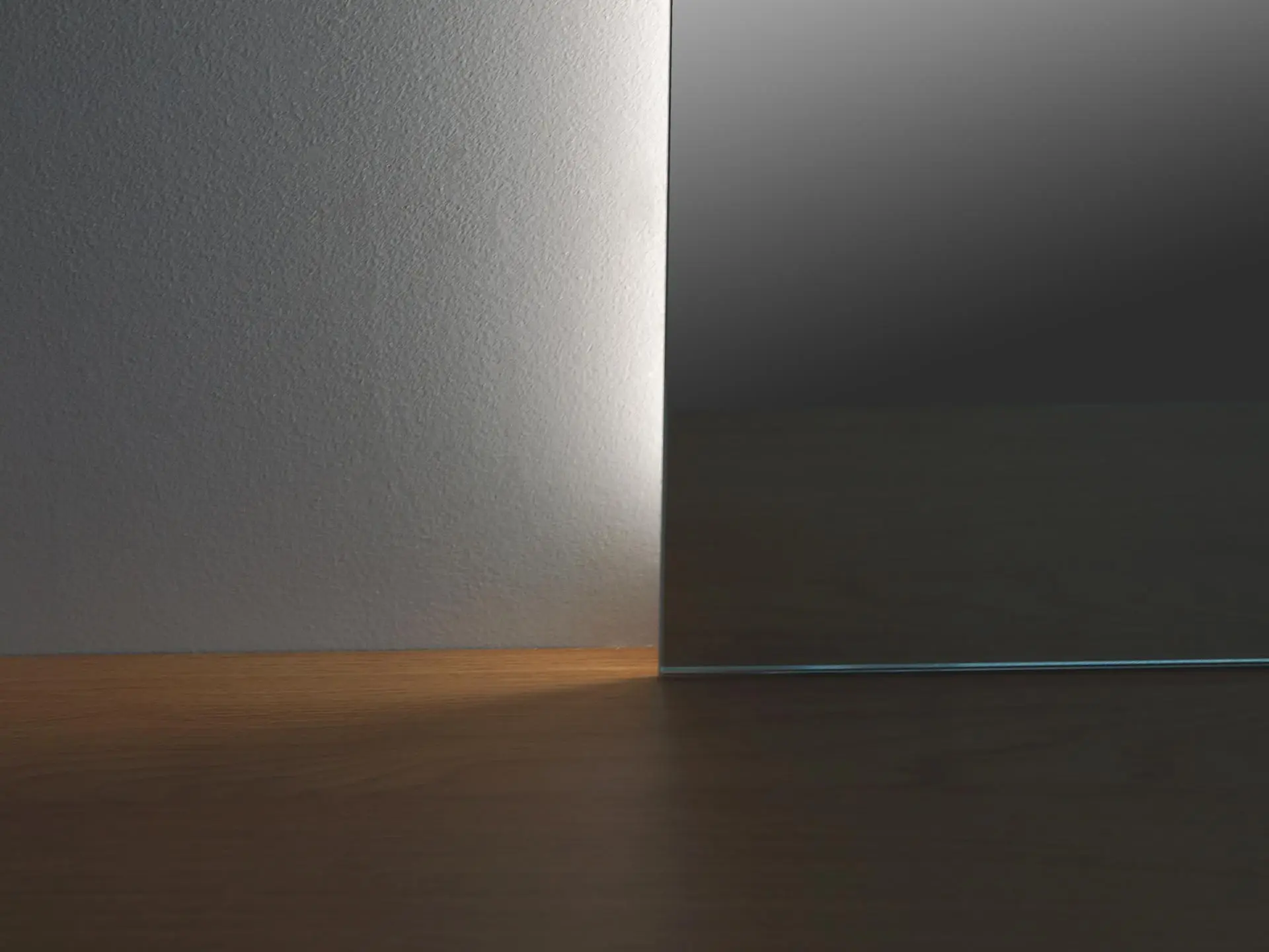 Зеркало с ящиками Mede с подсветкой оснащено светодиодной подсветкой по периметру зеркала. Подсветка представляет собой светодиодную ленту в алюминиевом профиле с рассеивателем. Выключатель располагается на кромке подзеркального щита над столешницей. Выключатель всегда справа. Подсветка комплектуется блоком питания. Разъем для блока питания на кромке подзеркального щита под столешницей справа.