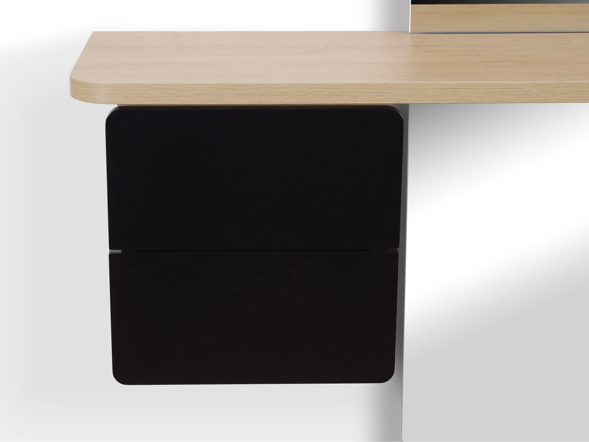 В тумбе два ящика на направляющих скрытого монтажа, неполного выдвижения. Открываются от нажатия.