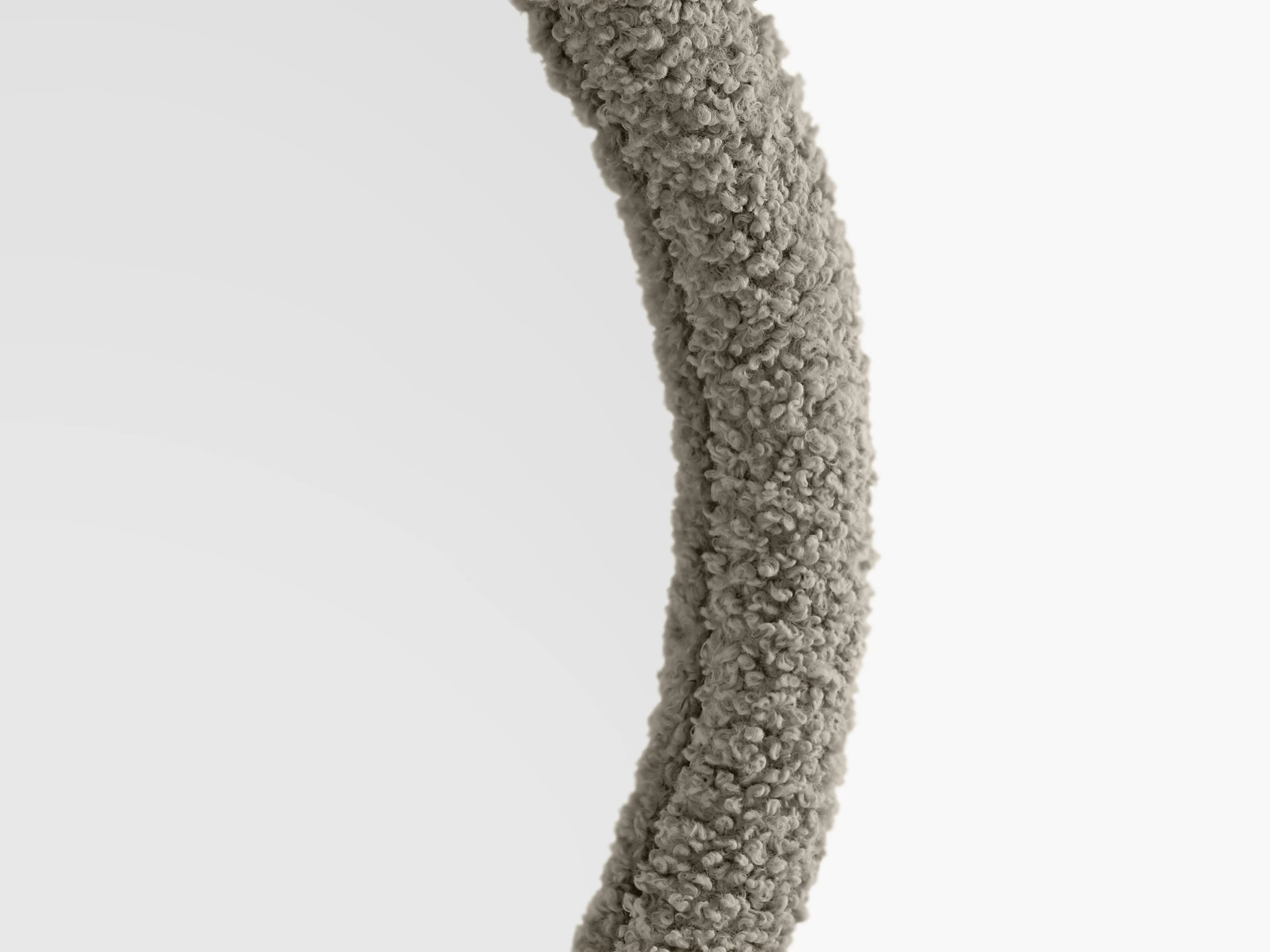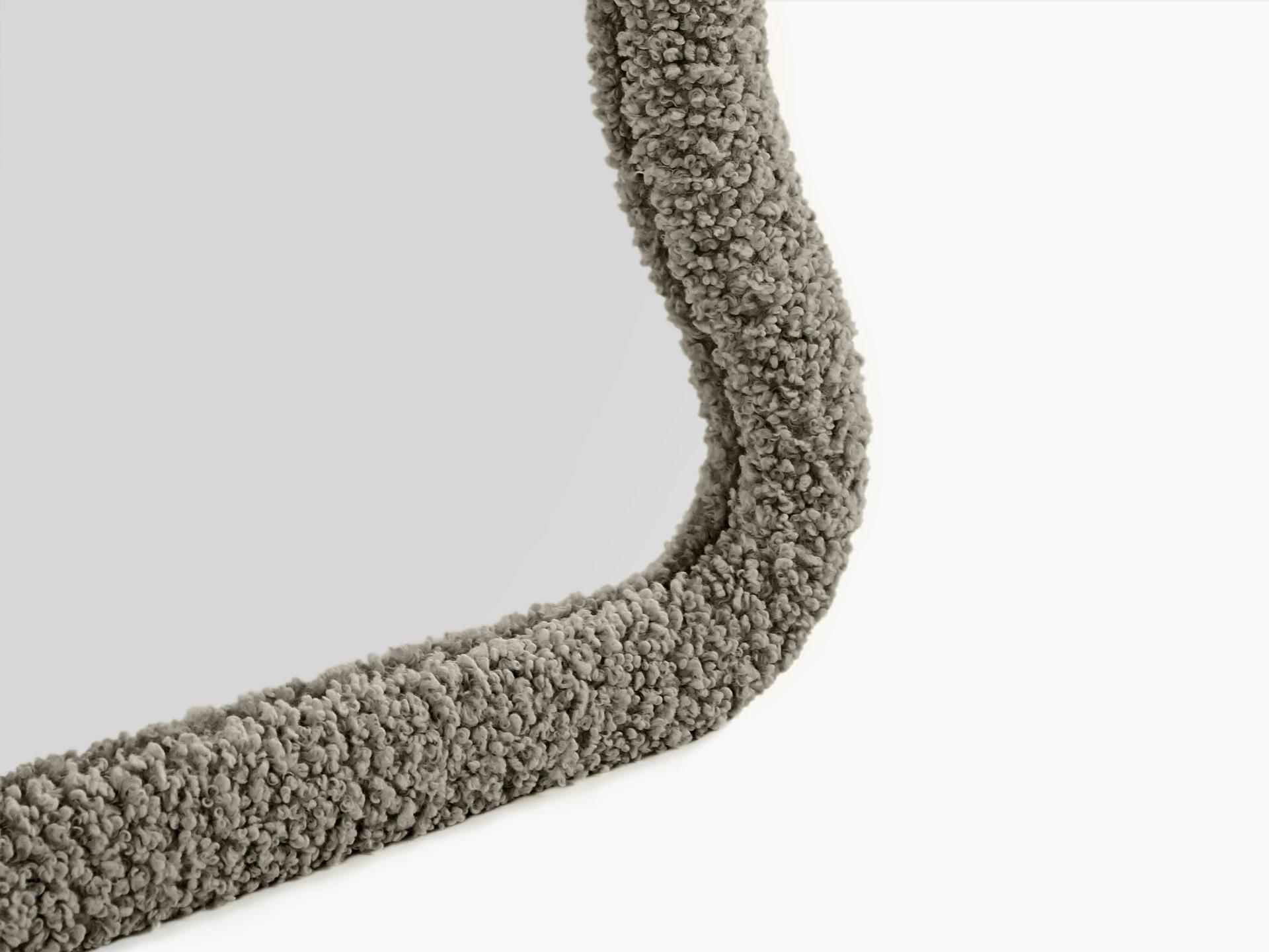 Напольное фигурное зеркало Francis выделяется оригинальной геометрией. Волнистый край контрастирует с прямыми линиями, поддерживает тренд на плавные формы и активную геометрию в интерьере. Рама выполнена из МДФ, обтянута фактурной тканью «букле». Что добавит в ваш интерьер тактильности, глубины, многослойности. Размер зеркального полотна 75x175 см — можно увидеть себя в полный рост.