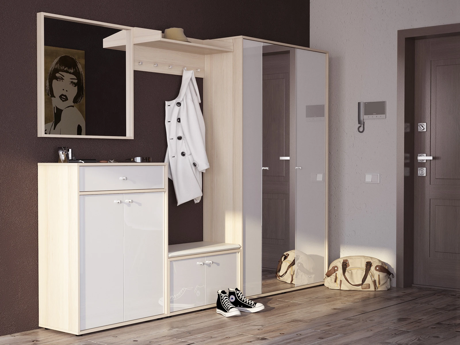 Latte — дизайнерская коллекция функциональной корпусной мебели для прихожей. Основу составляют базовые изделия с благородным минималистичным внешним видом: шкафы, комоды, обувницы, вешалки для одежды. Концепт — современный дизайн, выраженный в легкости визуального восприятия. В центре внимания: светлые оттенки, зеркальные и глянцевые поверхности, строгая геометрия, отсутствие декора. Для индивидуальных интерьерных решений несколько вариантов фасадов: ЛДСП, зеркало, стекло в белом и в оттенке капучино. Бликующие поверхности не утяжеляют и не «съедают» свет, а наполняют локацию свежестью, воздушностью, дружелюбной атмосферой, придают динамику, визуальный объём. Подходят как для компактных пространств, так и для больших помещений. С Latte вы составите индивидуальную композицию для удобного хранения вещей по категориям и поддержите порядок в доме.