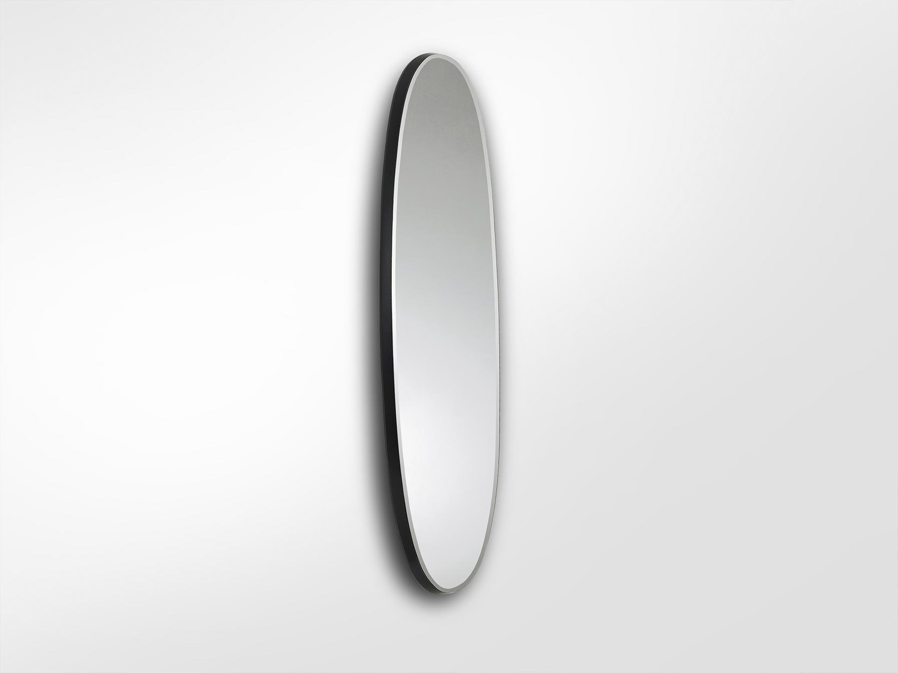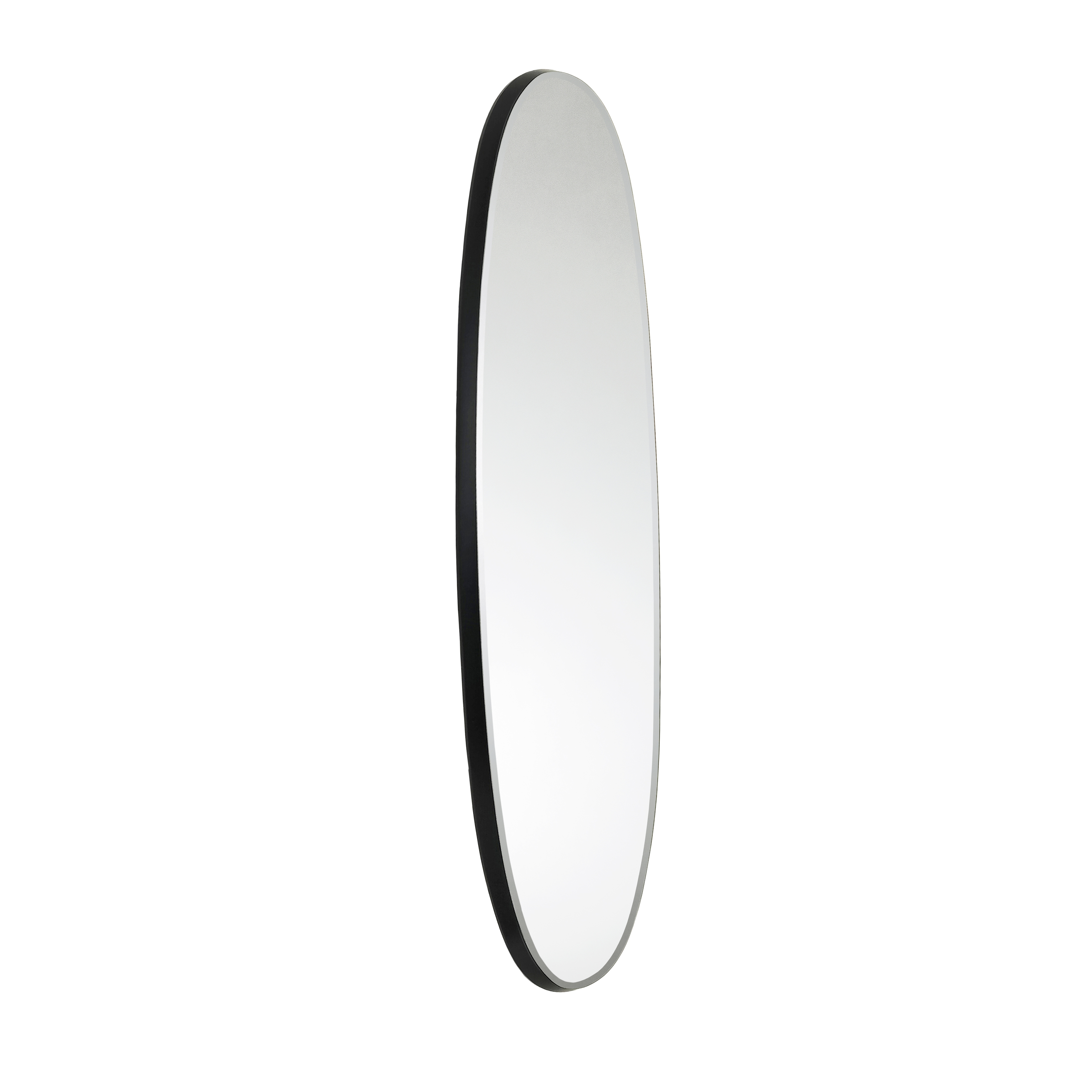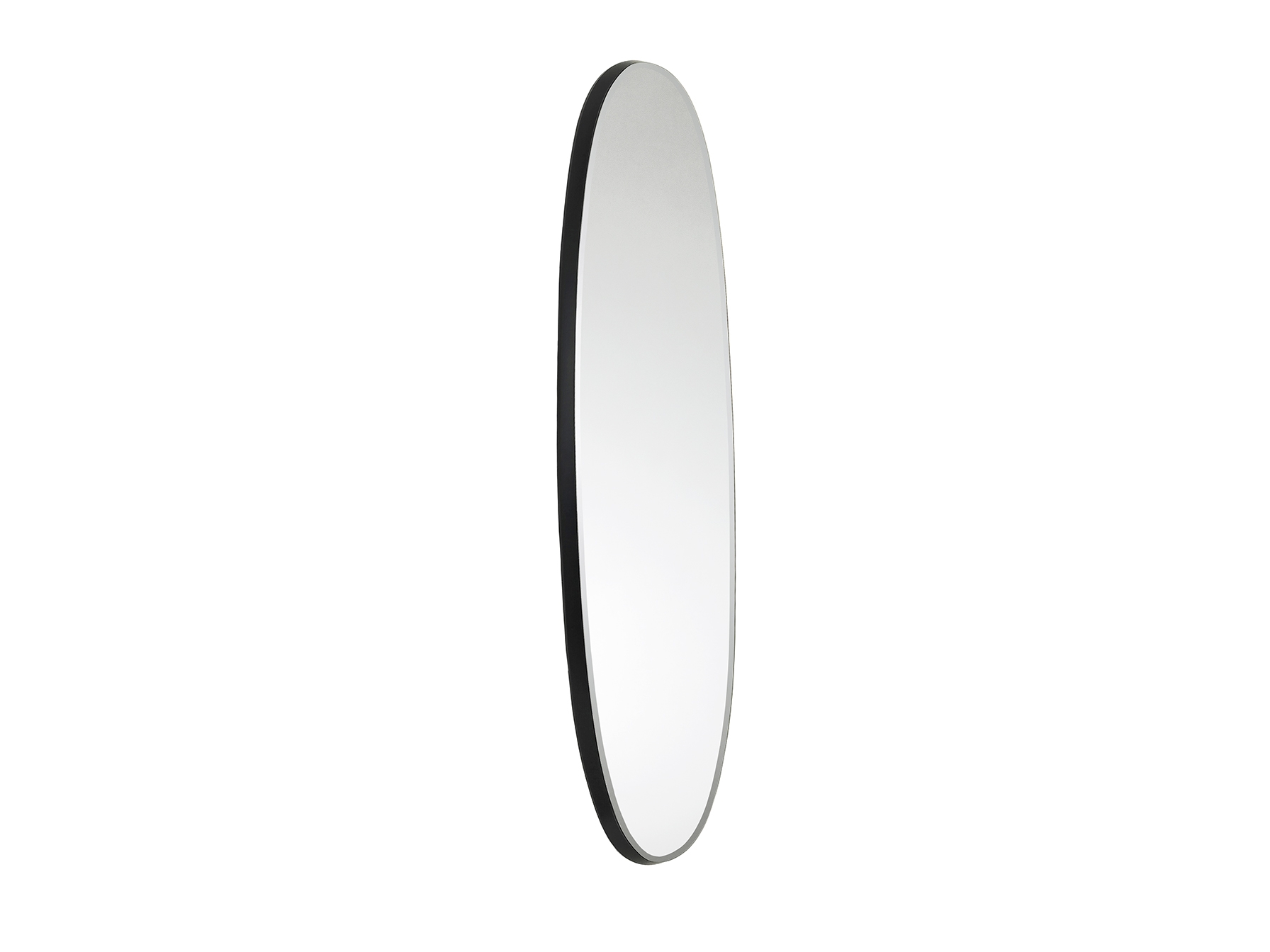 Овальное зеркало в раме из МДФ, окрашенное в черный сатиновый цвет. Скошенная пластина.