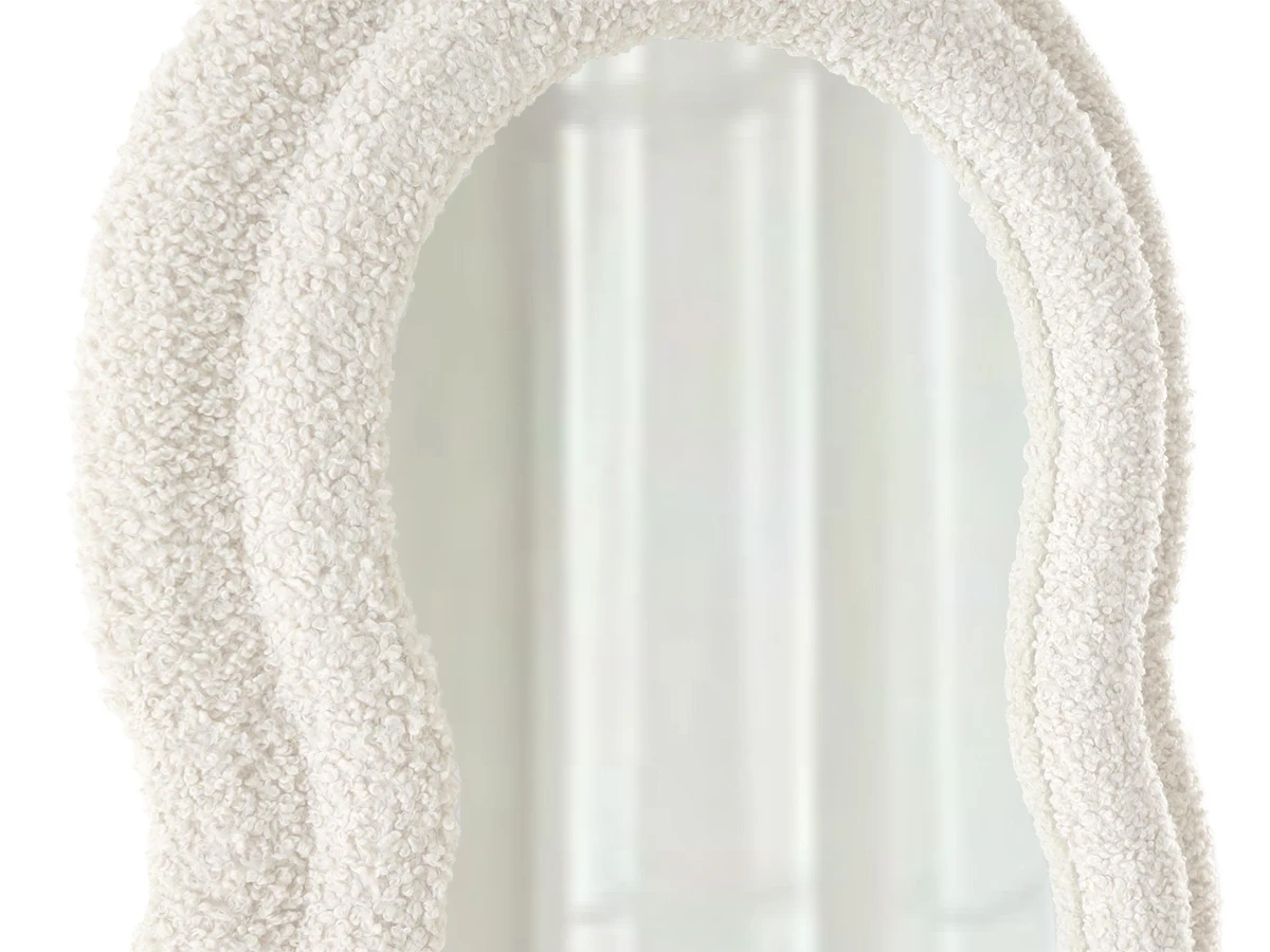 Настенное фигурное зеркало в мягкой раме. Интерьерное зеркало Fluffy напоминает облачко, которое сразу приковывает к себе внимание. Двойная рама обтянута ворсистой тканью «букле». Зеркало можно закрепить как вертикально, так и горизонтально. Предназначено для использования в прихожей, коридоре, гостиной, спальне, гардеробной, детской, гостиной, обеденной зоне или бизнес-локации. Оригинальное зеркало Fluffy станет эстетичным украшением современного интерьера в любом стиле. Наполнит пространство легкостью, воздушностью, интересными акцентами. Поддержит в интерьере крупные объекты схожей формы или фактуры. Стильное зеркало-облачко Fluffy также может стать отличным подарком на новоселье, день рождения, 8 Марта.
