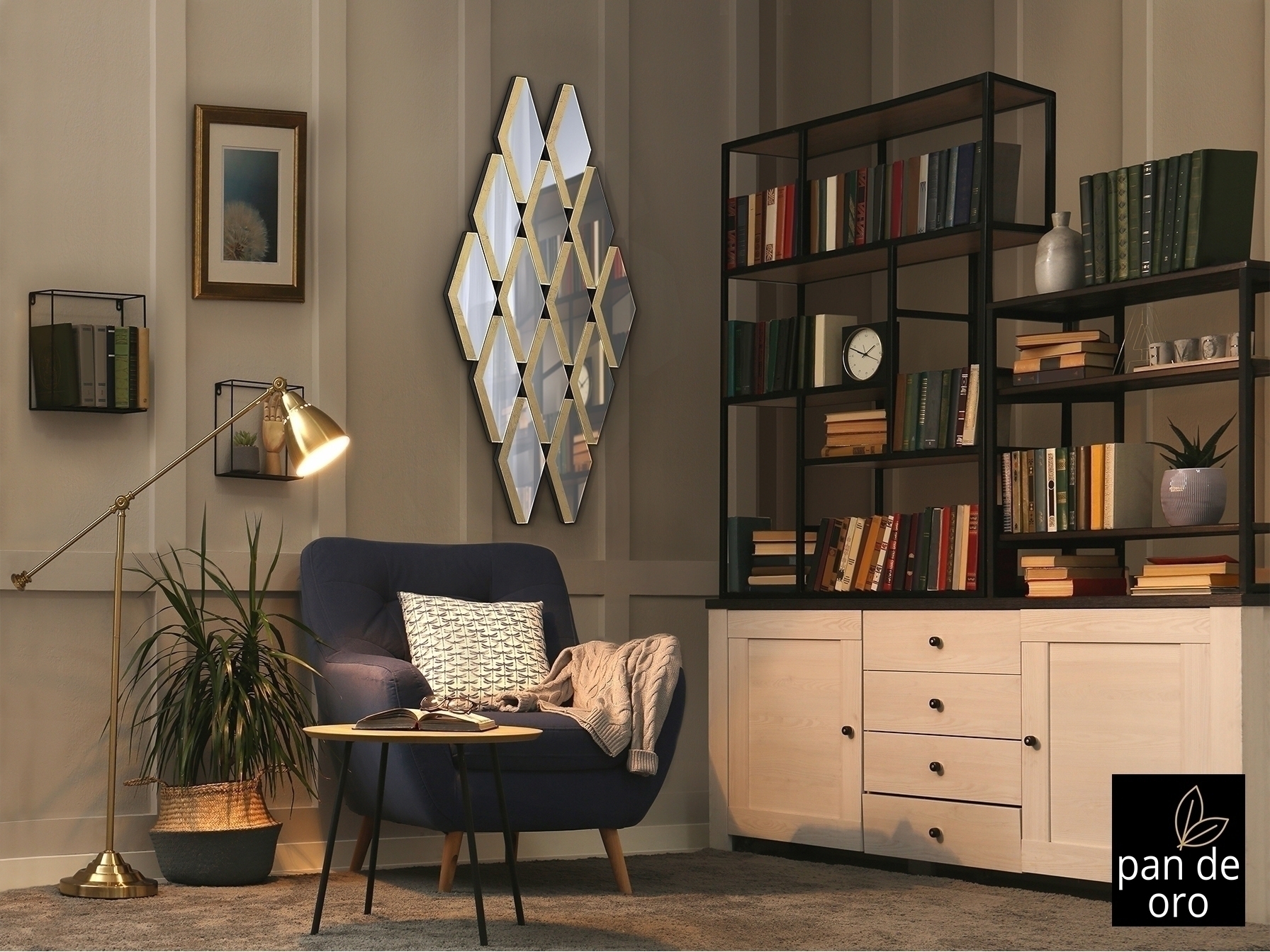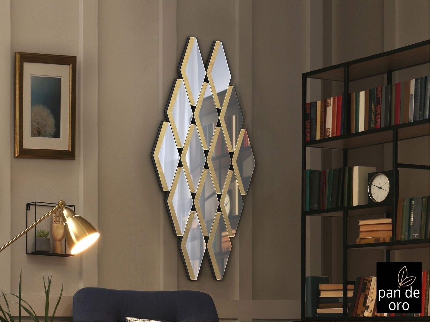 Зеркало образовано композицией пластин с деталями из СУСАЛЬНОГО ЗОЛОТА. Задняя часть МДФ покрыта черным лаком. Готов повесить горизонтально или вертикально.