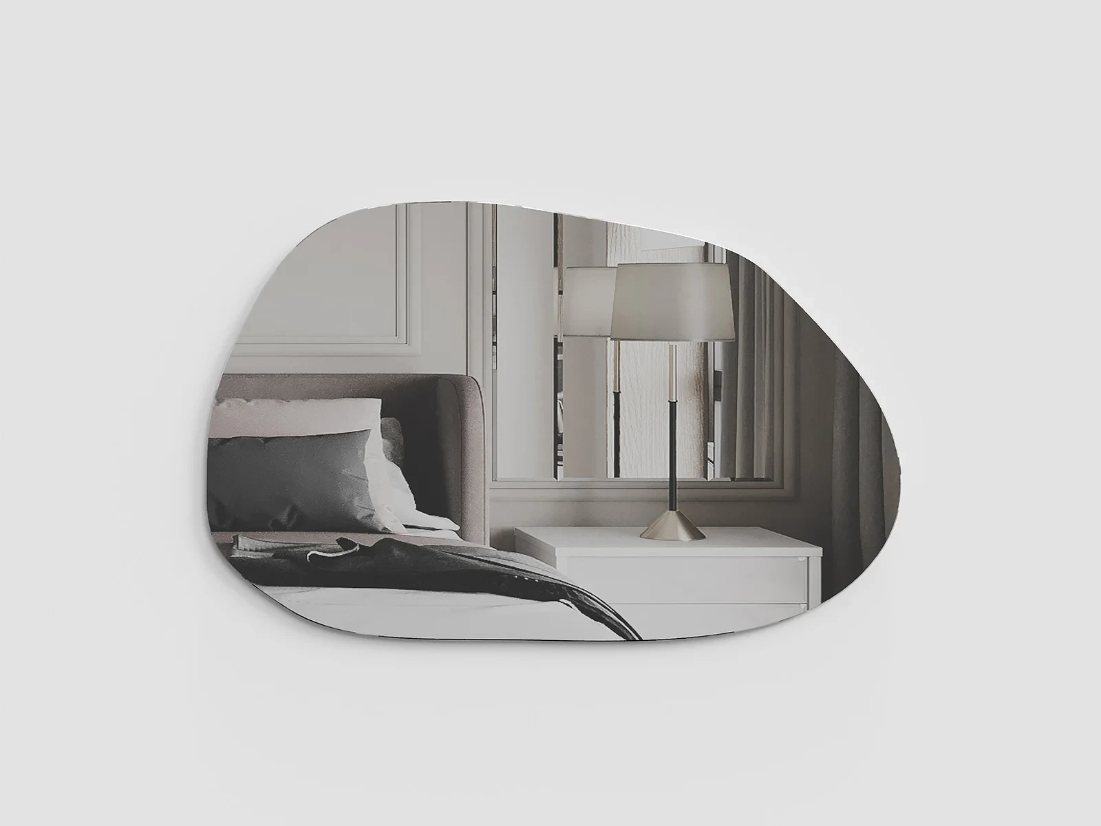 Зеркало настенное Stone малое представляет собой зеркальную деталь фигурной формы, установленную на подзеркальный щит прямоугольной формы. Зеркало имеет крепления для установки на стену в двух положениях.