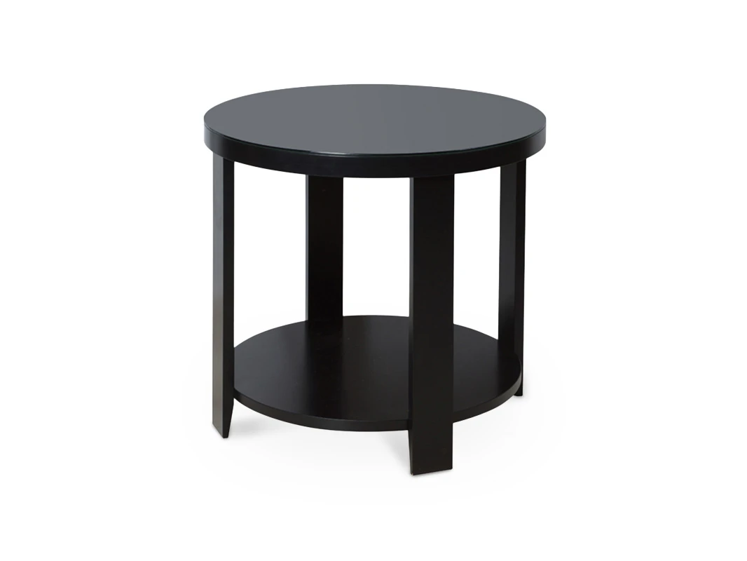 Круглый журнальный стол. Cтолешница декорирована цветным стеклом.