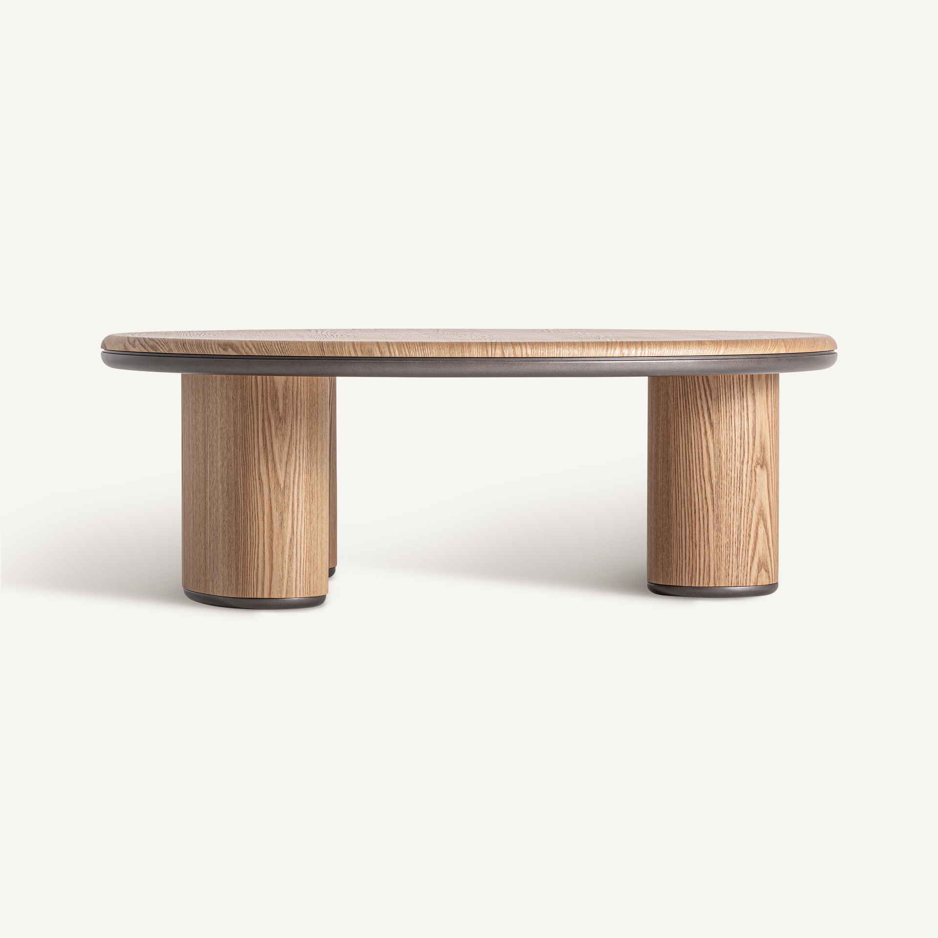 Журнальный столик изготовлен из светло-коричневого МДФ в сочетании с коричневой фанерой.
