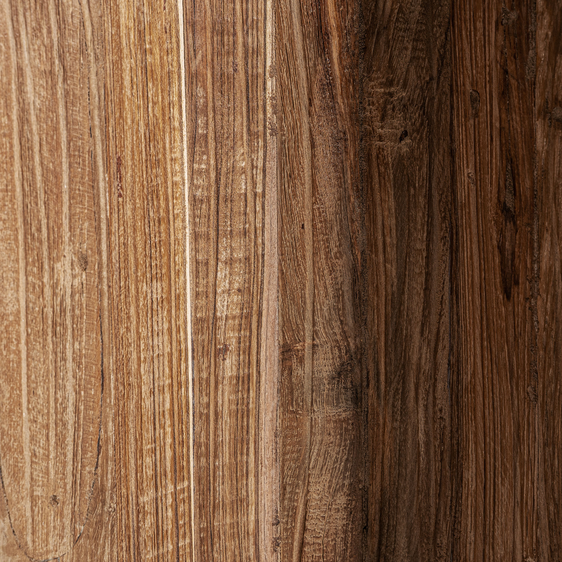 Журнальный столик Erloy в деревенском стиле, изготовленный из переработанного тикового дерева светло-коричневого цвета с состаренной отделкой.