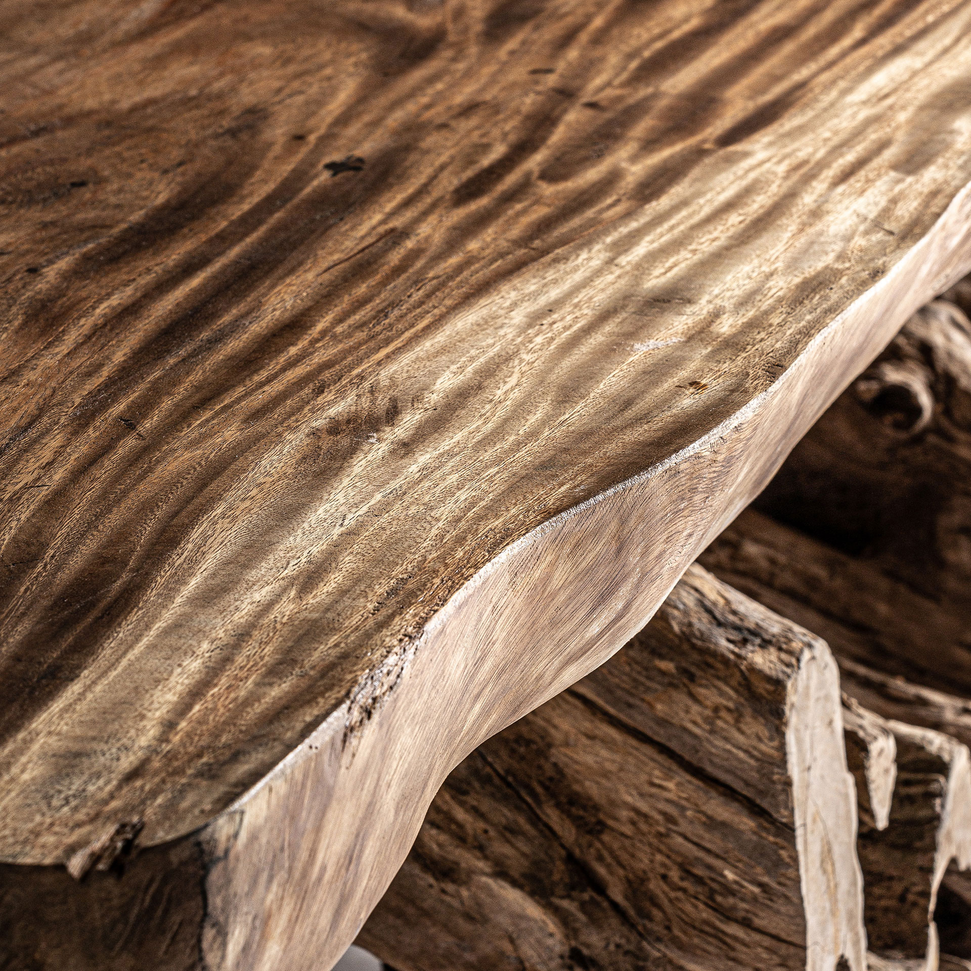 Журнальный столик Kanye от VICAL home дает новое определение элегантности благодаря корням дерева Суар. Этот деревянный журнальный столик размером 200x172x52 см с состаренной натуральной отделкой является отражением природы во всей ее красе. Вариации и узоры на дереве делают его уникальным предметом интерьера вашей гостиной.