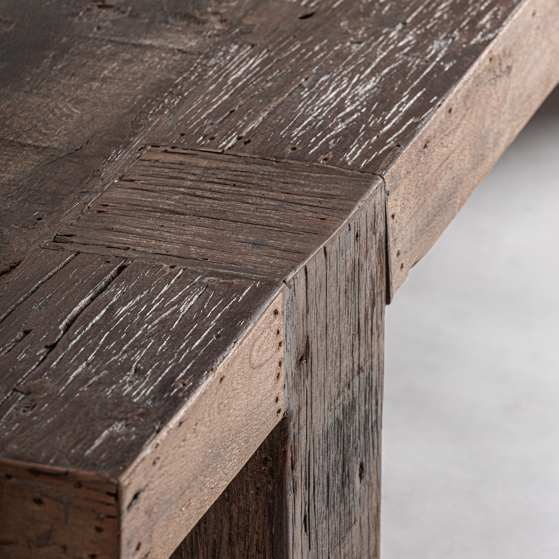 Журнальный столик Losse в классическом стиле, изготовлен из переработанной древесины коричневого цвета.