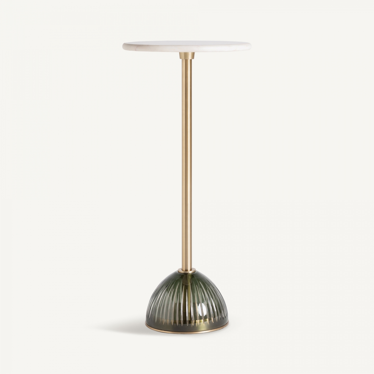 Журнальный столик из муранского стекла с тонким каркасом и основанием из дутого стекла с золотыми деталями дополняется мраморной столешницей, предлагая сочетание роскоши и визуальной легкости.