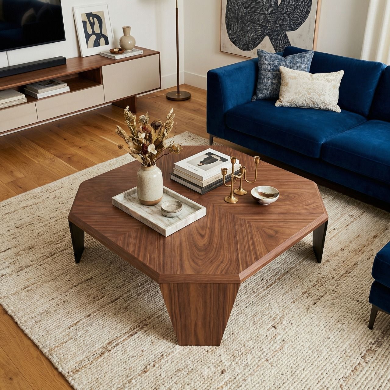 Журнальный столик Nidji — это выразительный арт-объект, который задает тон интерьеру. Его ключевая особенность — нестандартная восьмиугольная форма: классический квадрат со срезанными углами, придающая модели легкость и графичность. Благодаря идеальным пропорциям и живой текстуре дерева, этот стол будет естественным центром притяжения в гостиной или эффектным акцентом в лобби отеля.