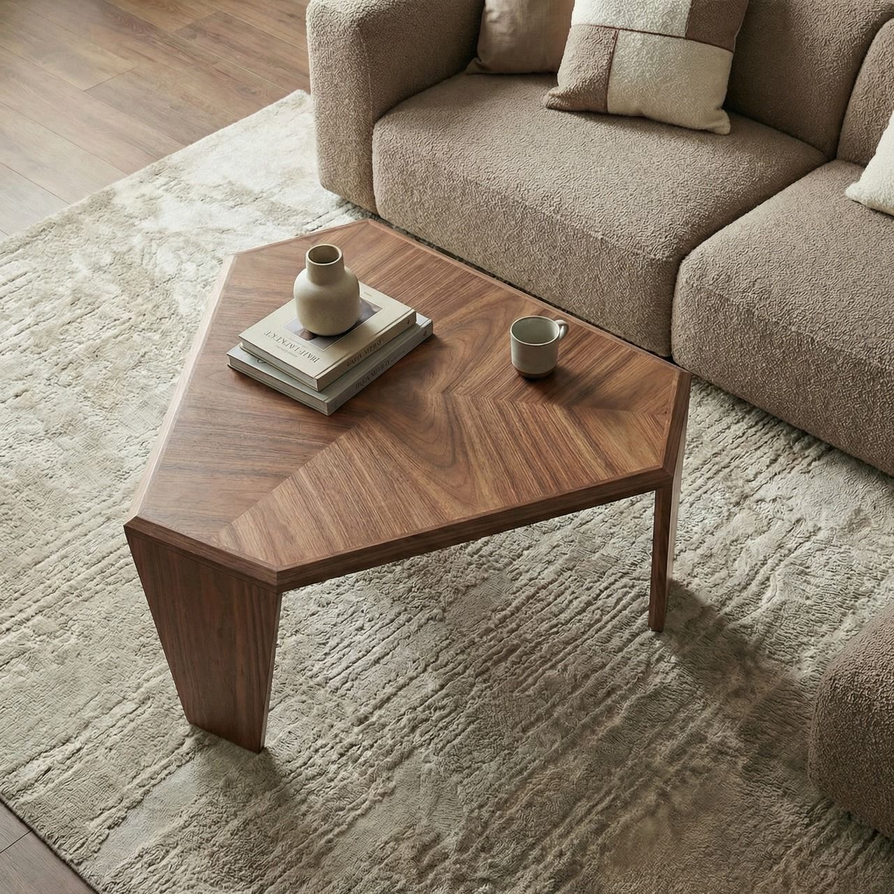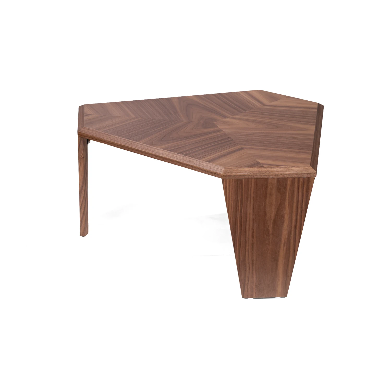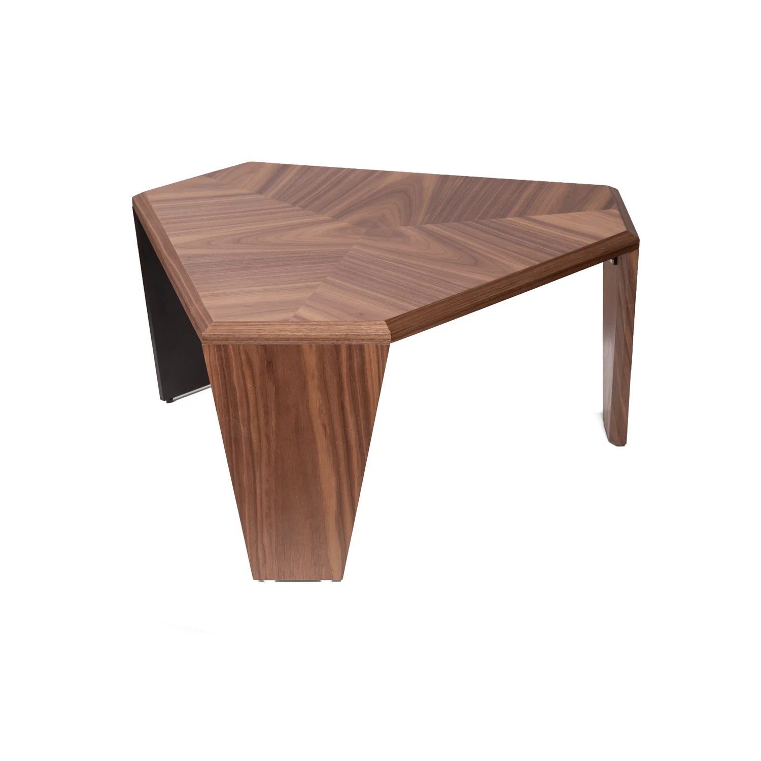 Треугольник — самая динамичная фигура в дизайне. В журнальном столике Nidji его энергия смягчена усеченными углами, превращающими строгую форму в элегантный гексагон (шестиугольник). Это акцент, который невозможно не заметить. Благодаря идеальным пропорциям и живой текстуре дерева, этот стол будет естественным центром притяжения для зон отдыха, шоурумах или просторных гостиных.