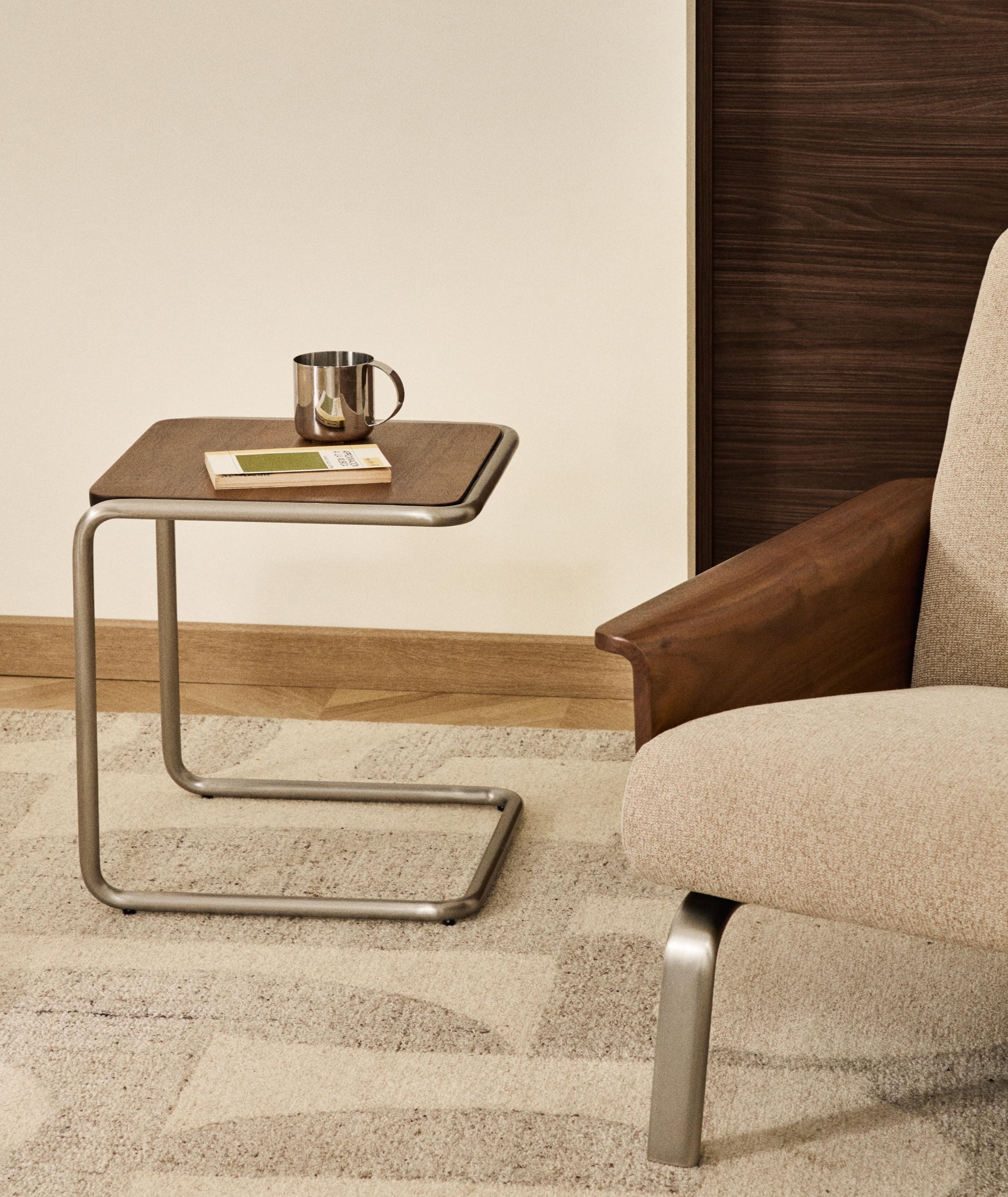 Tarsel переосмысливает элегантность середины века с помощью современного подхода, который идеально сочетает функциональность и визуальную изысканность. Его столешница из орехового шпона толщиной 0,6 мм с темной отделкой контрастирует с трубчатой конструкцией из нержавеющей стали с эффектом шлифовки, что позволяет ему выделяться как современный и изысканный намек на современный мир. Используемая древесина имеет сертификат FSC™ 100% цепочки поставок и имеет модель ответственного лесоуправления, гарантированное происхождение и прослеживаемость в каждой детали.